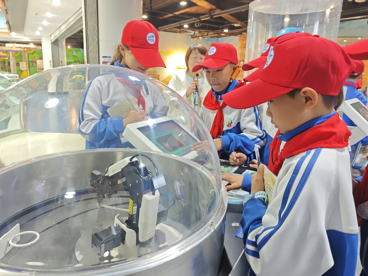 13日上午,营员们在新疆科技馆感受科技的神奇魅力。