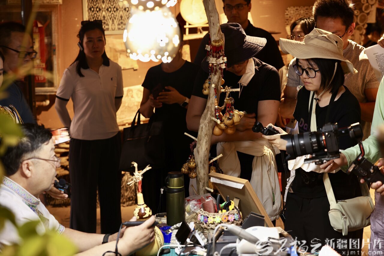 9月9日,采访团成员在吐峪沟景区非遗街区采访。