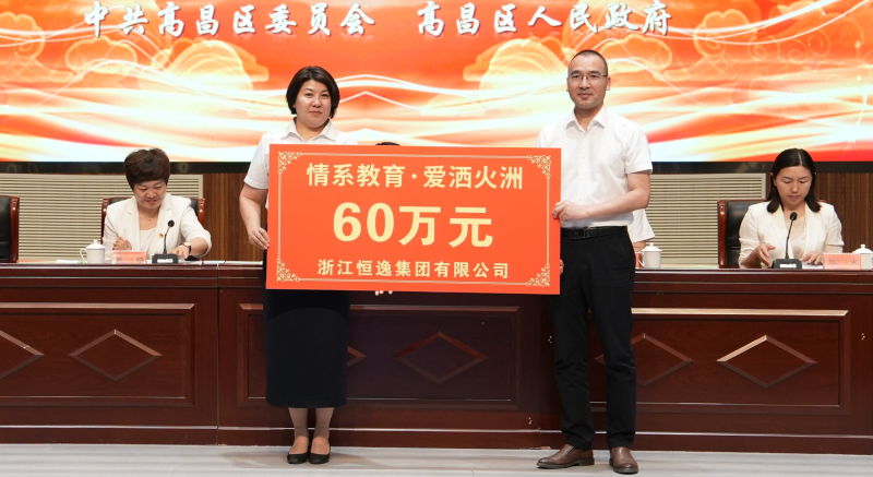 浙江恒逸集团有限公司向高昌区捐赠“情系教育·爱洒火洲”尊师重教公益资金60万元。吐鲁番市融媒体中心通讯员 王正文 摄