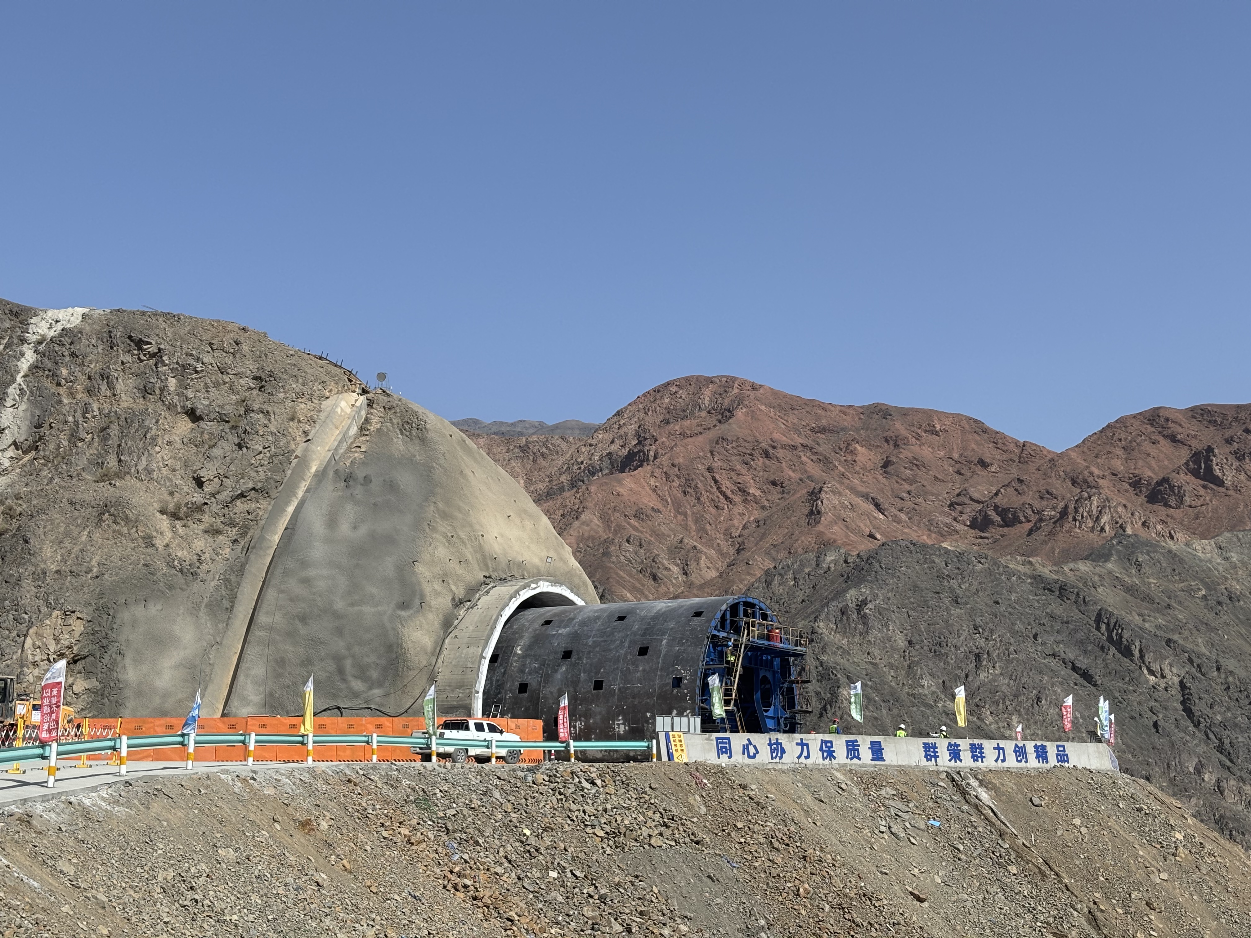 五标段阿拉沟1号隧道进口。吐鲁番市融媒体中心记者 买迪努尔 摄