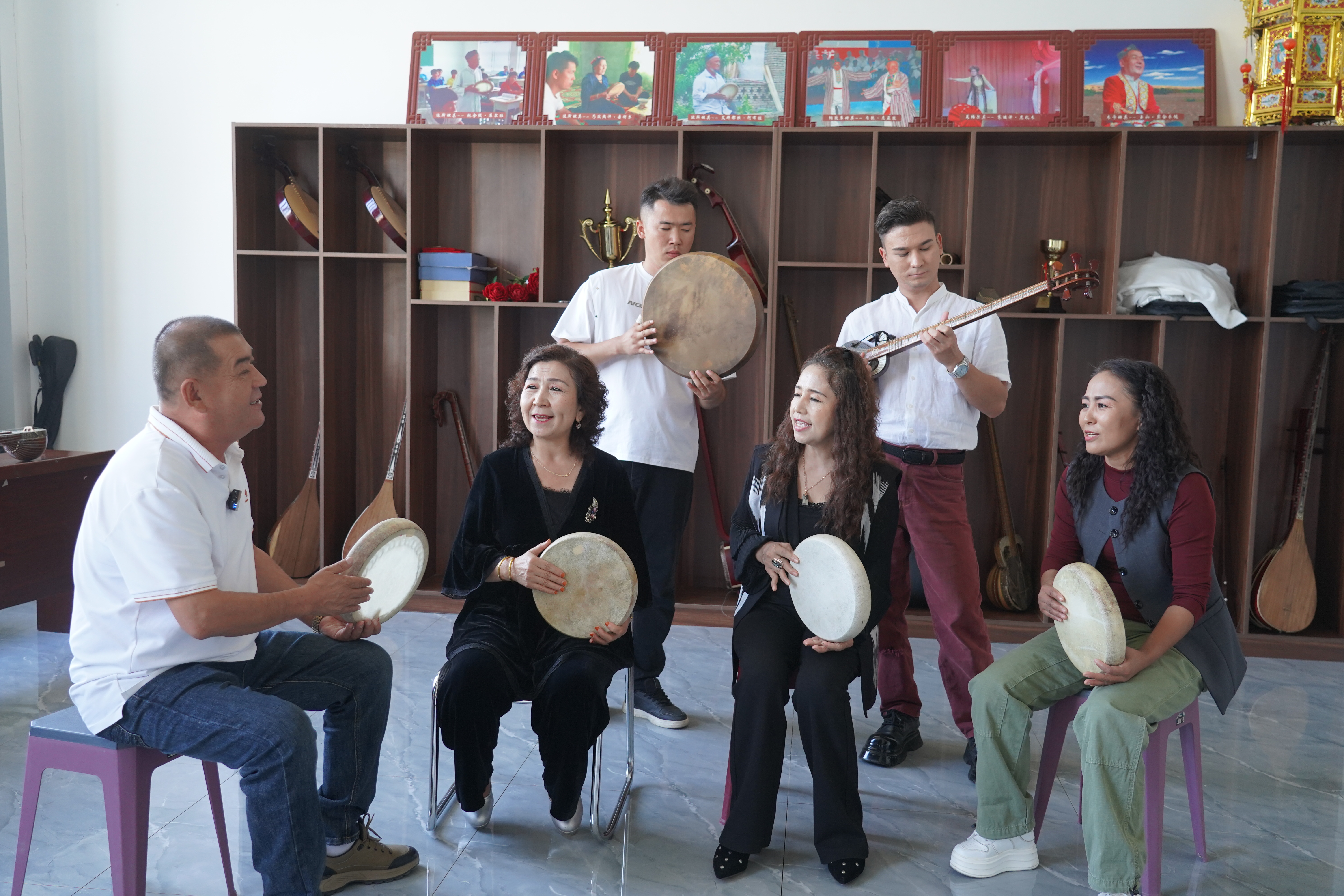 在文化馆的三十余载中,他的足迹遍布学术研讨会、基层义演和影像采集现场。他年均参与公益演出50场,推动“文化进万家”活动深入乡村;积极配合拍摄技艺资料,为古老艺术留存数字记忆。更难得的是,他能完整演绎达尔大格木卡姆的204首歌词、34个序曲,以及蒙兰玛木卡姆等三部经典,每一段旋律都深镌心间。