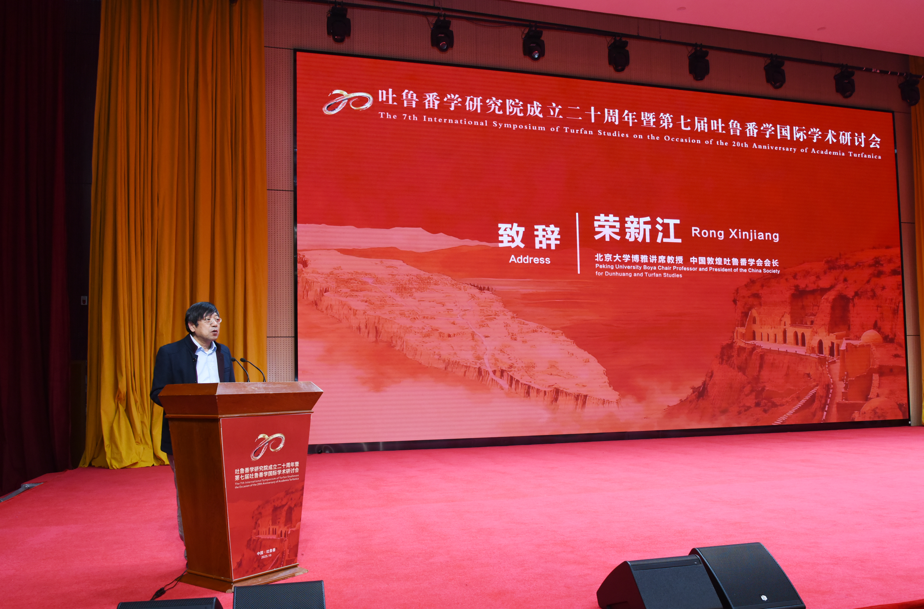 图为北京大学博雅讲席教授、中国敦煌吐鲁番学会会长荣新江致辞。吐鲁番市融媒体中心记者 刘健 摄