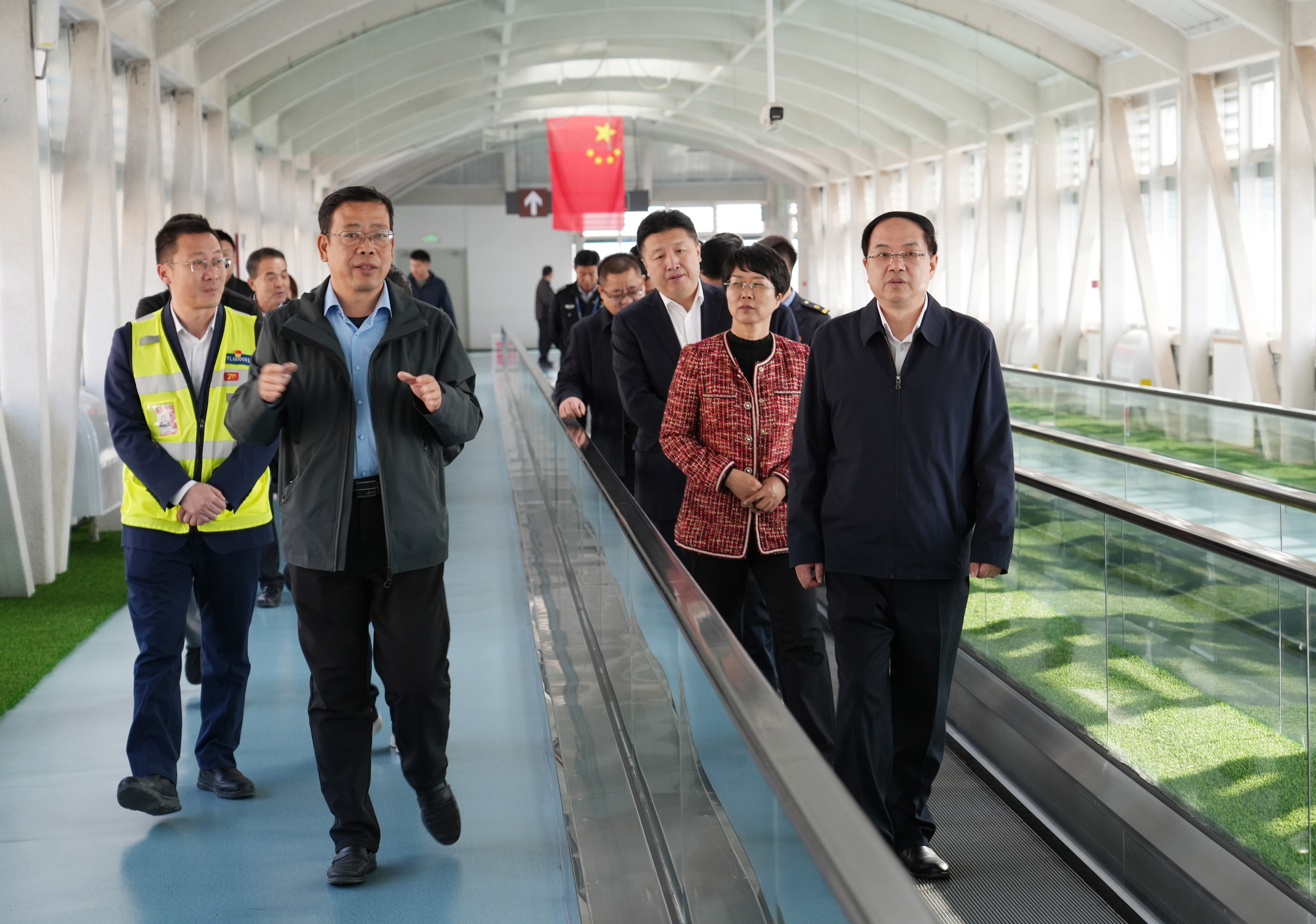 在吐鲁番北站、吐鲁番旅游综合服务中心(空铁连廊)和吐鲁番交河机场,文天平体验空铁换乘流程,详细了解候车(机)大厅服务设施配置、安全生产及运行保障等情况。文天平强调,高铁站和机场是旅游城市形象展示的重要窗口,也是吐鲁番对外开放的“名片”。要始终坚持以人民为中心的发展理念,建设与提质并重,通过优化空间布局、增加运力供给、提升服务质量等吸引人气,推动“空铁联运”服务更加标准化、规范化,让旅客出行更省心、更舒心。吐鲁番站货运中心是兰新铁路上的枢纽站点,主要承接来自南北疆的煤炭、工业盐等大宗货物。文天平走进货运中心,与负责人深入交流,询问货物吞吐量、运力保障和运输成本控制等情况。文天平强调,货运中心是区域物流发展的关键节点,要加快结构调整与改造升级,大力推行“铁路+航空+公路”多式联运模式,持续提升货物运输承载力与时效,为吐鲁番打造现代化物流体系提供坚实支撑。在吐鲁番国家骨干冷链物流基地(临空产业园),文天平察看规划蓝图,了解功能布局、冷链仓储能力及招商引资进展。文天平强调,要紧扣临空经济定位,依托吐鲁番特色农产品资源优势,高规格建设冷链物流基地,完善“田间预冷—仓储保鲜—运输配送”全链条服务体系,助力特色农产品更便捷地走向全国、远销亚欧。