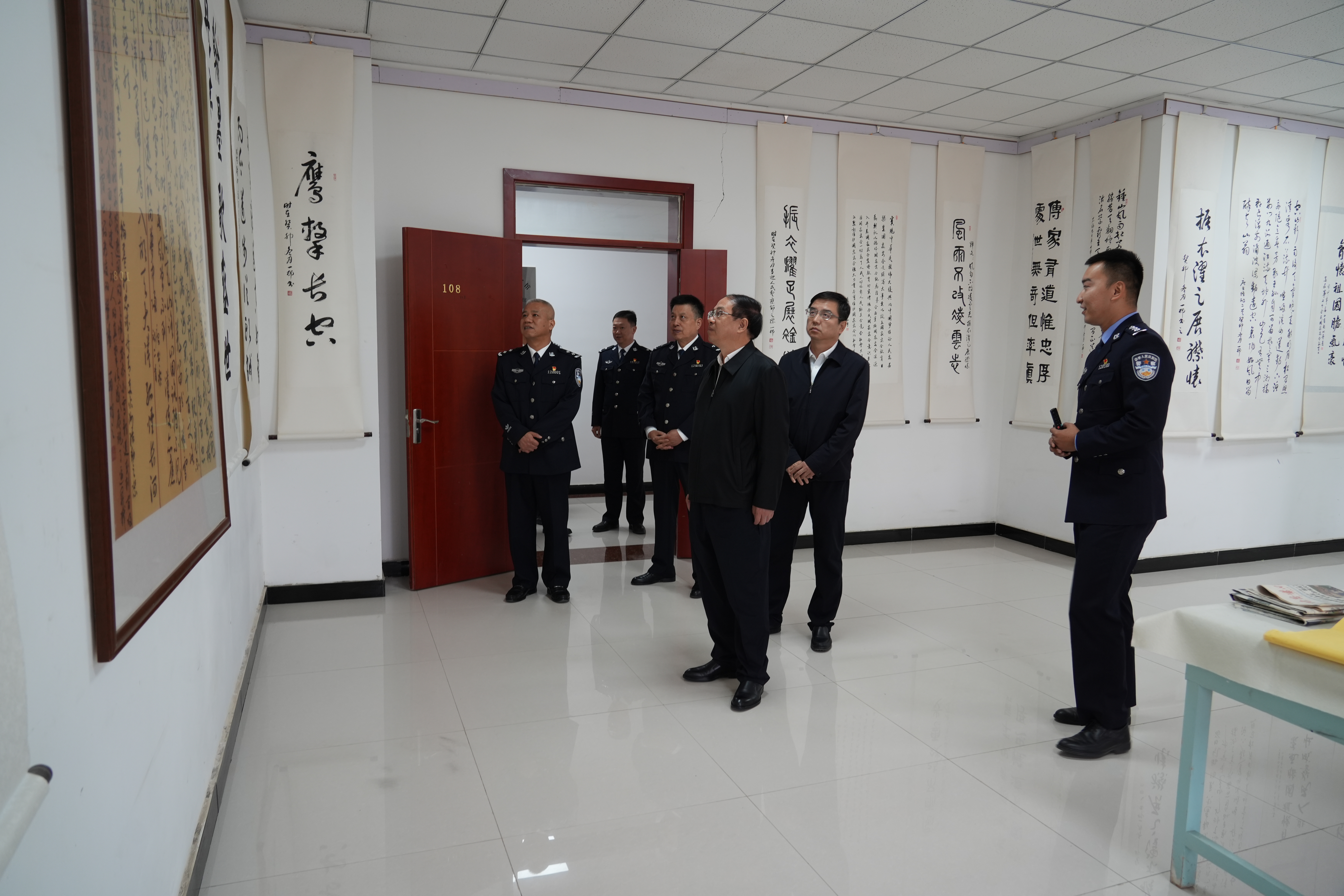 在市公安局书画苑,文天平详细了解警营文化建设成果。吐鲁番市融媒体中心记者 李彦强 摄
