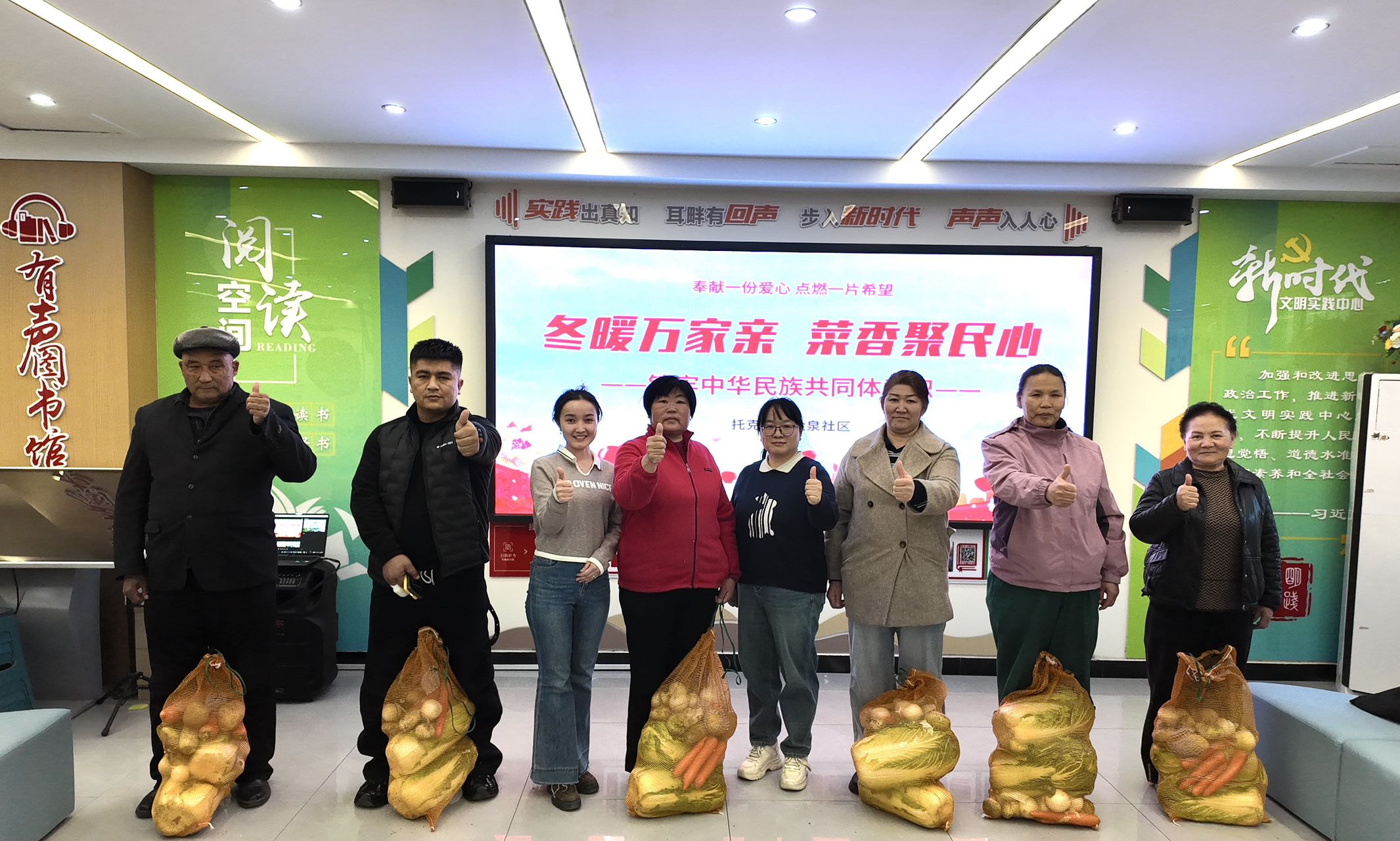 “暖心蔬菜包”发放环节备受居民欢迎。社区工作人员与志愿者将白菜、萝卜、土豆等新鲜蔬菜分装打包,逐一送到困难群众和独居老人手中。接过蔬菜包的居民笑容洋溢,连声道谢。