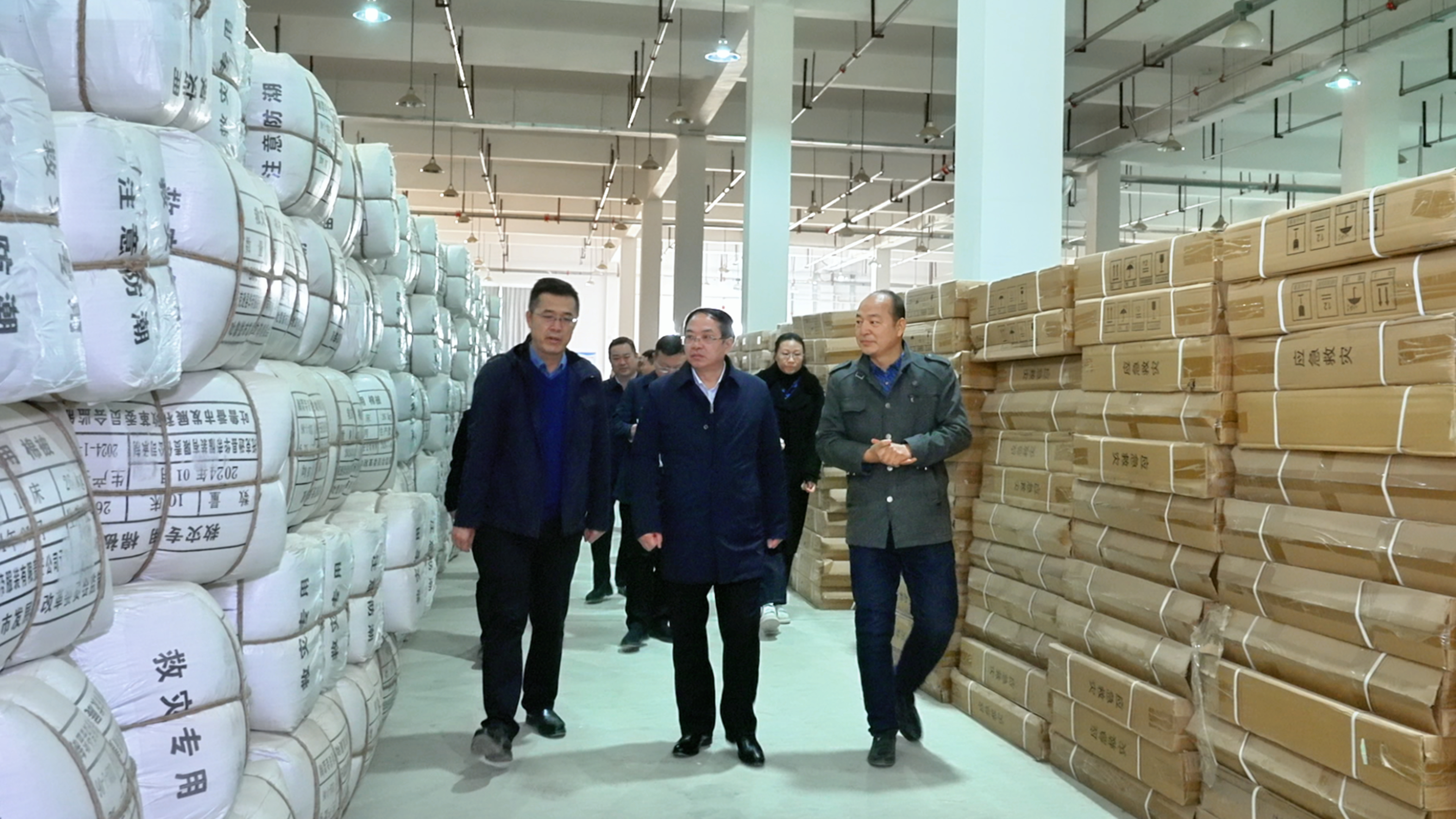 在市救灾物资储备库,文天平仔细察看应急物资管理和储备情况。吐鲁番市融媒体中心记者 李彦强 摄