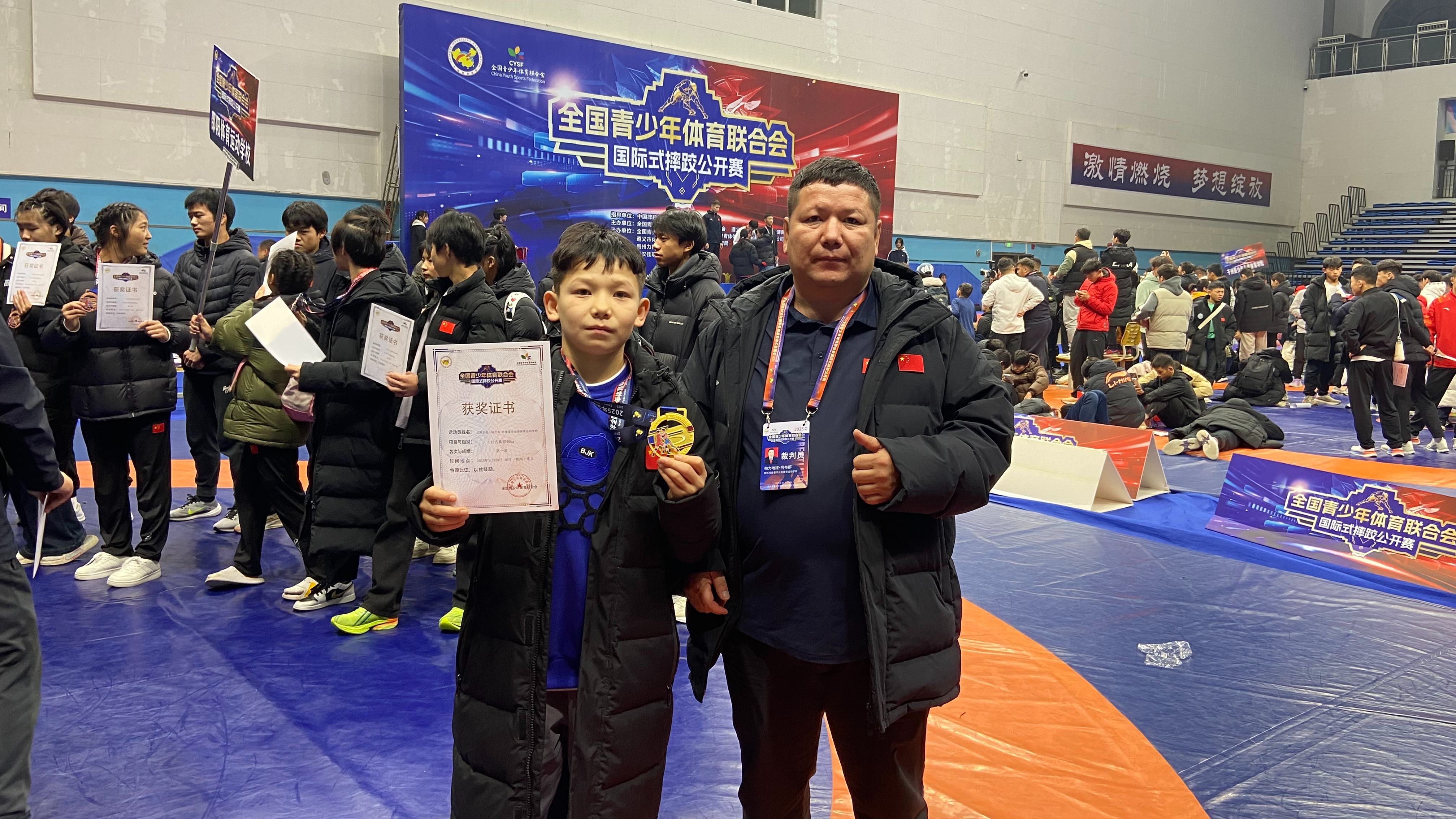 近日,2025年全国青少年体育联合会国际式摔跤公开赛在贵州省遵义市圆满落幕。高昌区三堡乡中学摔跤队奋勇拼搏,在比赛中取得了两金一银的佳绩。