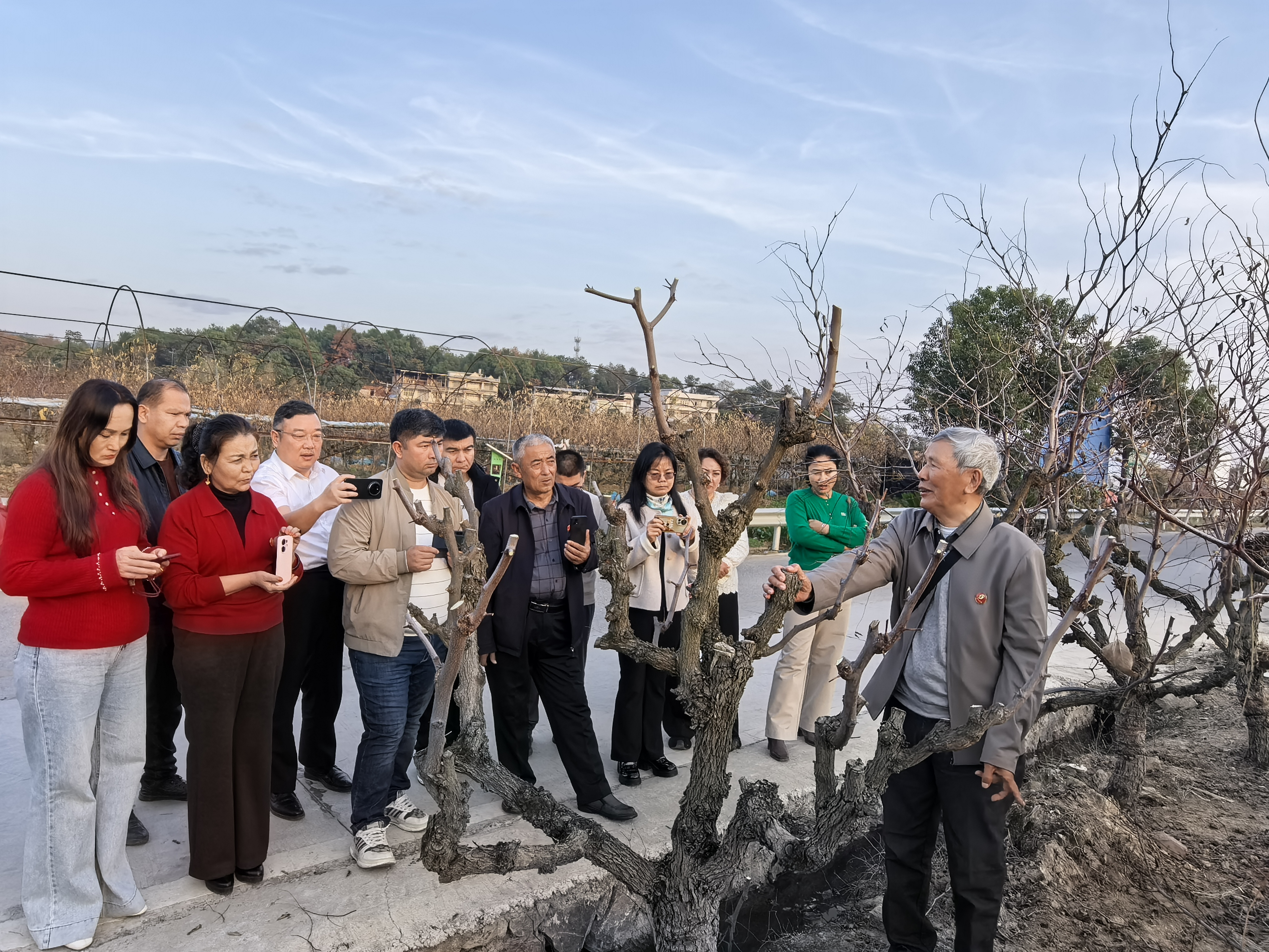 现场教学环节,注重学以致用。在衡阳市祁东县鲜食枣种植基地,专家围绕冬季修剪、病虫害防治等技术进行现场教学,学员积极参与实操练习,学习氛围十分浓厚。在湖南新丰果业有限公司,学员全面观摩枣酒全流程加工工艺,深入学习“鲜果加工增值、全链条效益提升”的产业发展模式,为吐鲁番鲜食枣产后加工利用与产业链延伸提供借鉴。