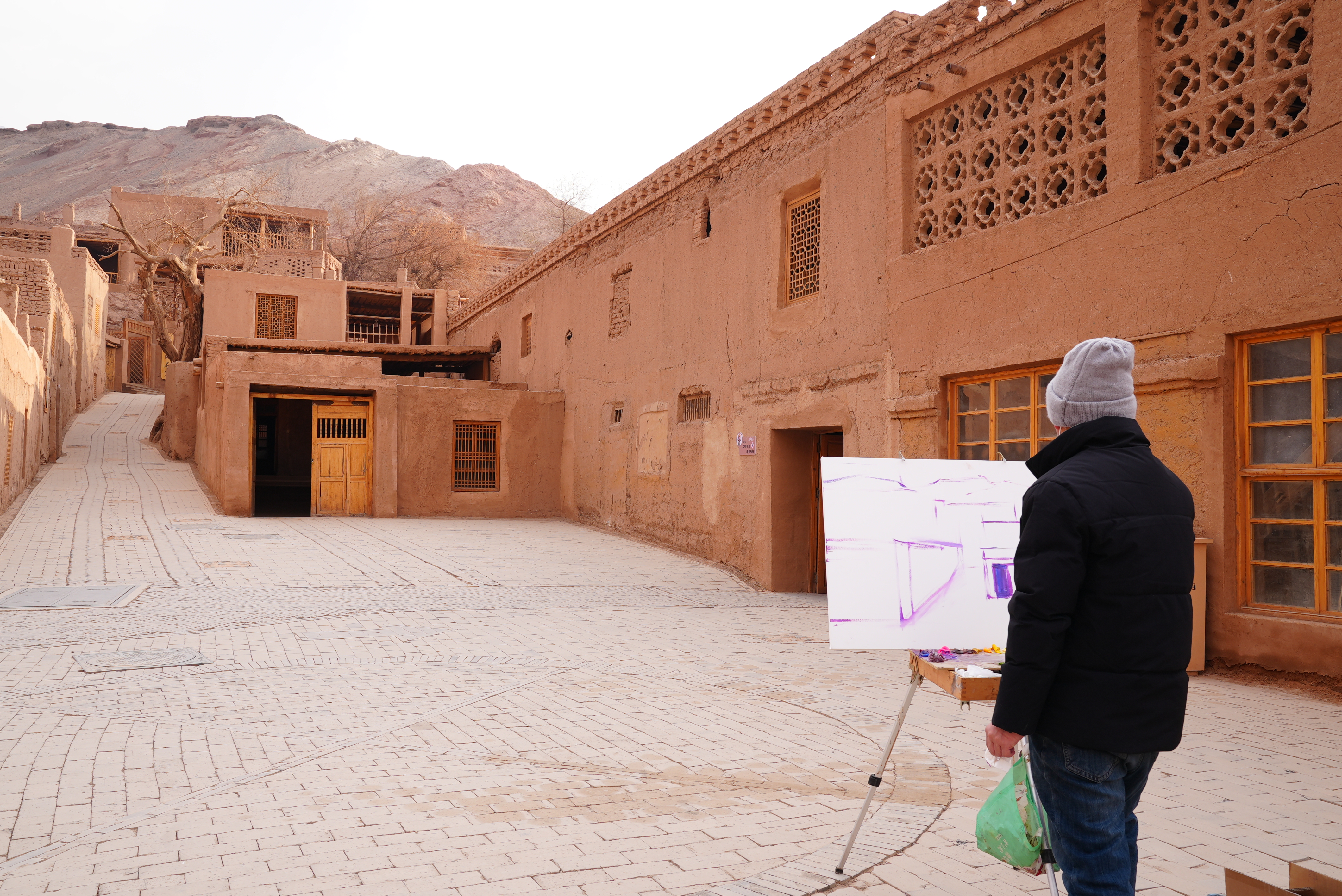 吐峪沟村保存着新疆最完整的生土建筑群,被称为“中国生土建筑博物馆”。新疆美协青年艺委会秘书长田希军表示,吐峪沟建筑特色鲜明,适合艺术表现,希望通过作品呈现当地各族群众的生活景象。