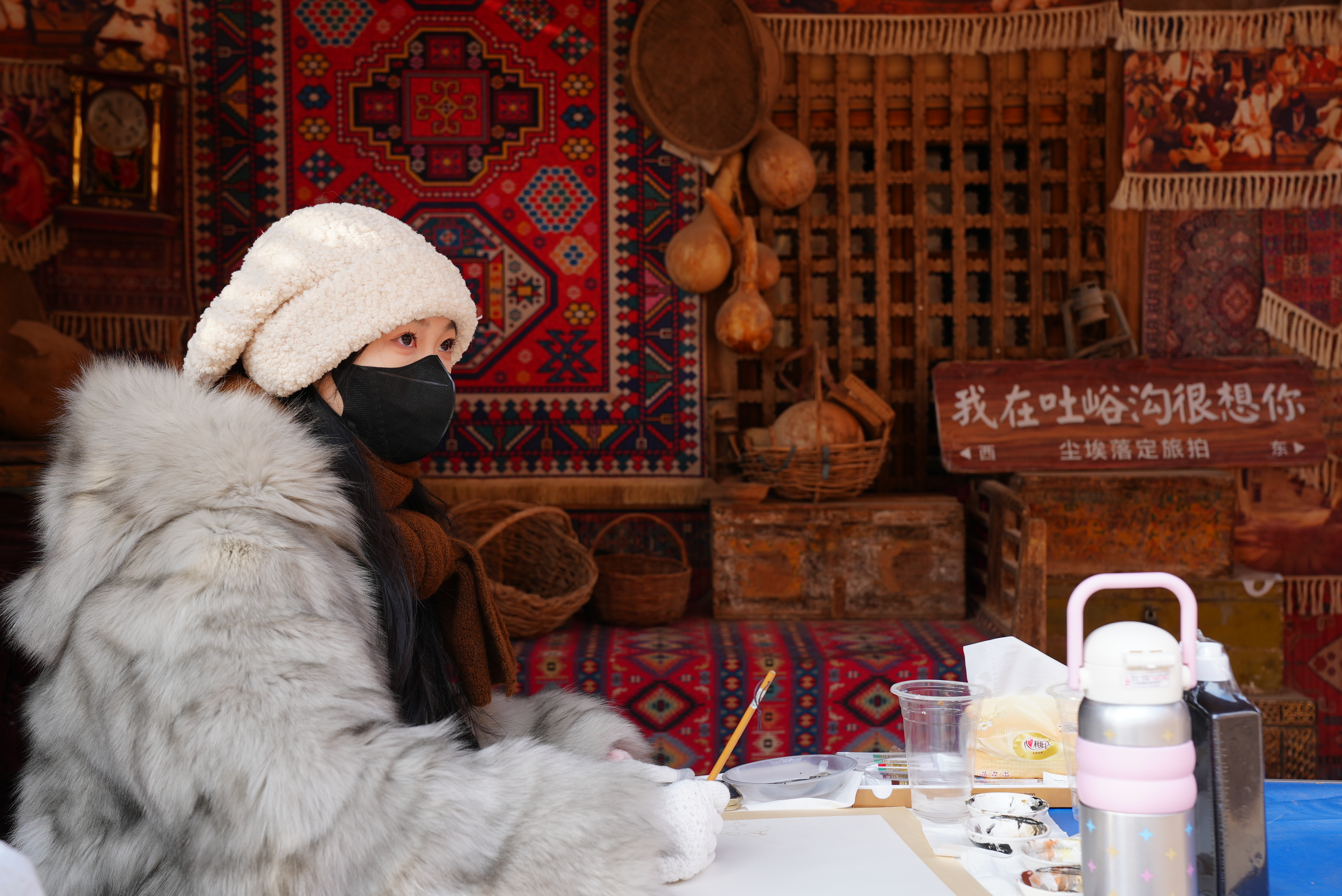 在吐峪沟景区,美术工作者们通过油画、国画、水彩等形式进行写生。新疆艺术学院教师康羽表示,当地的自然与人文风貌激发了他的创作灵感,已现场完成部分速写,计划后续创作完整作品。