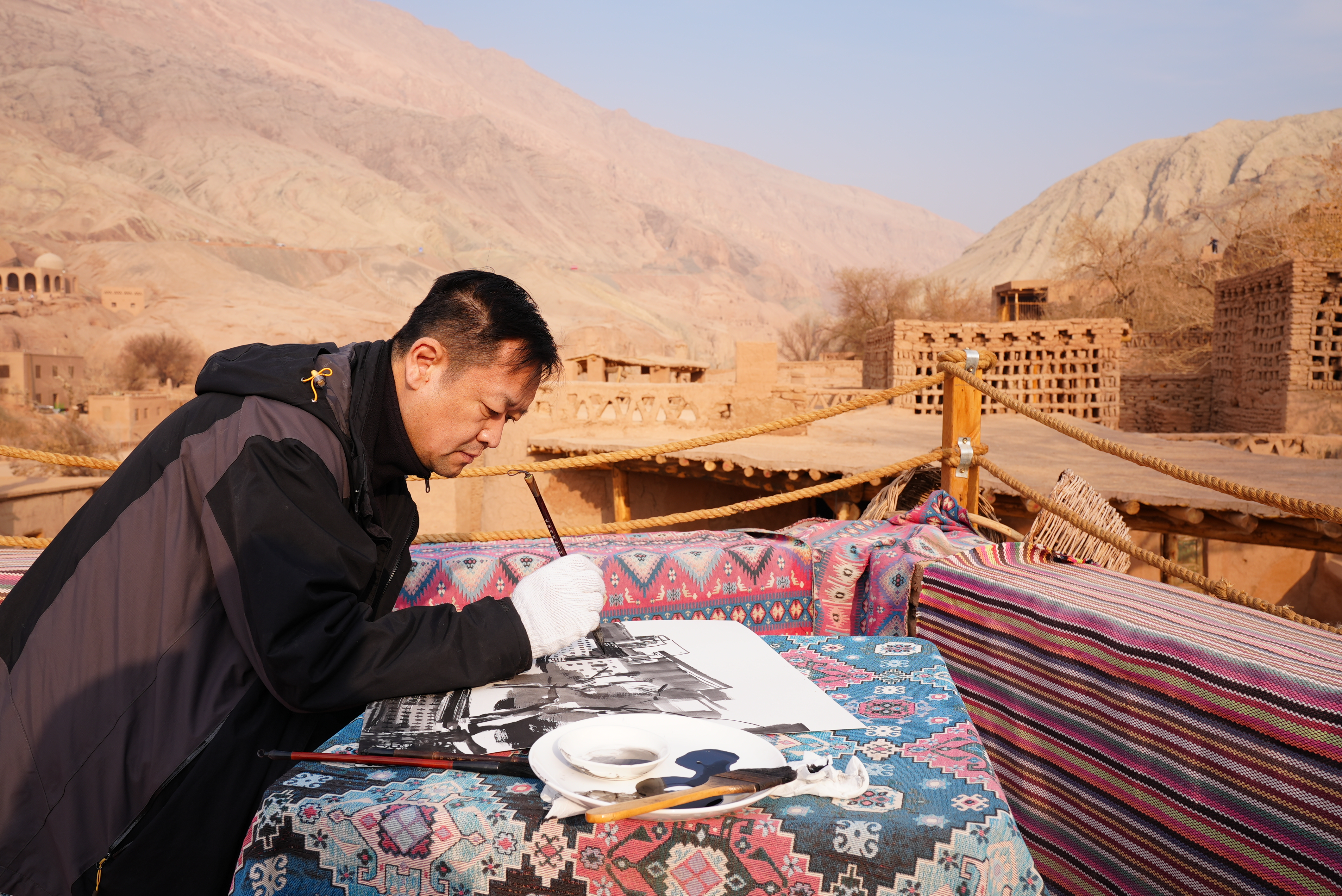 美术工作者正在吐峪沟古村落创作美术作品。吐鲁番市融媒体中心记者 刘宇杰 摄