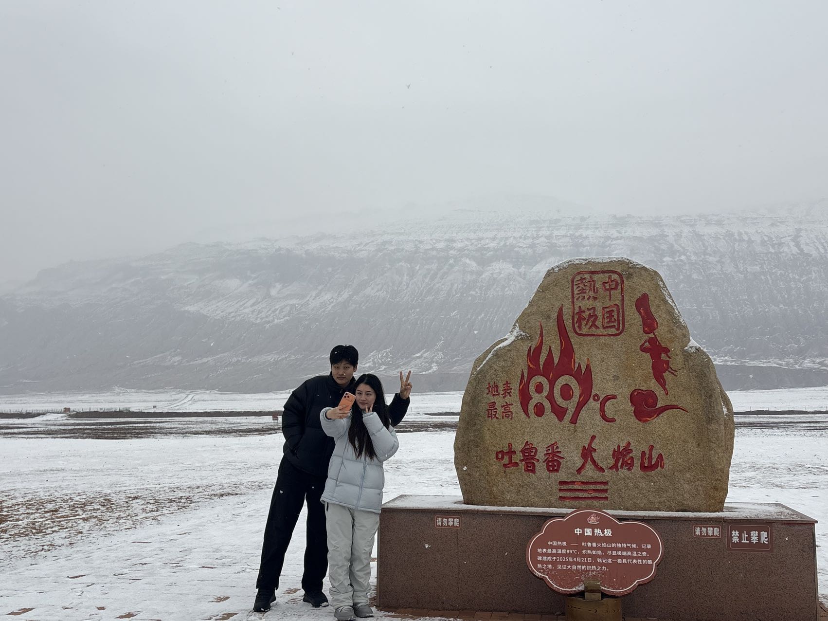 在火焰山景区,只见连绵起伏的火红色山体被白雪覆盖,呈现出“红装”变“银装”的壮丽景象,吸引不少游客驻足观赏。江苏游客张钰涔说:“第一次来火焰山景区,没想到会遇到下雪。以前在西游记里面看到的火焰山是红彤彤的,今天却是一片白雪皑皑。雪景很漂亮,以后有机会我们还会再来体验。”