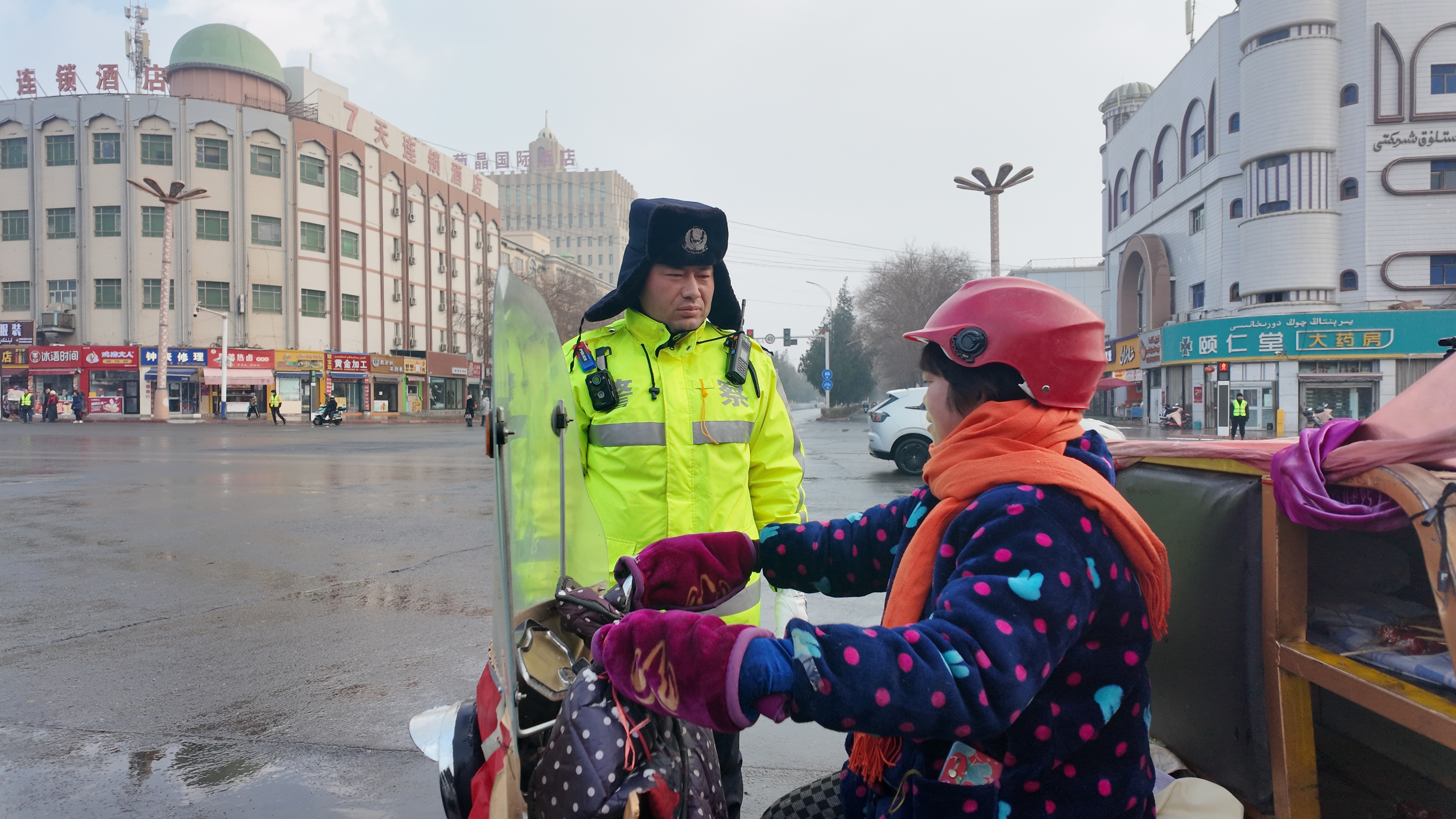 交警提醒市民安全出行。 吐鲁番市融媒体中心记者 阿地兰 摄