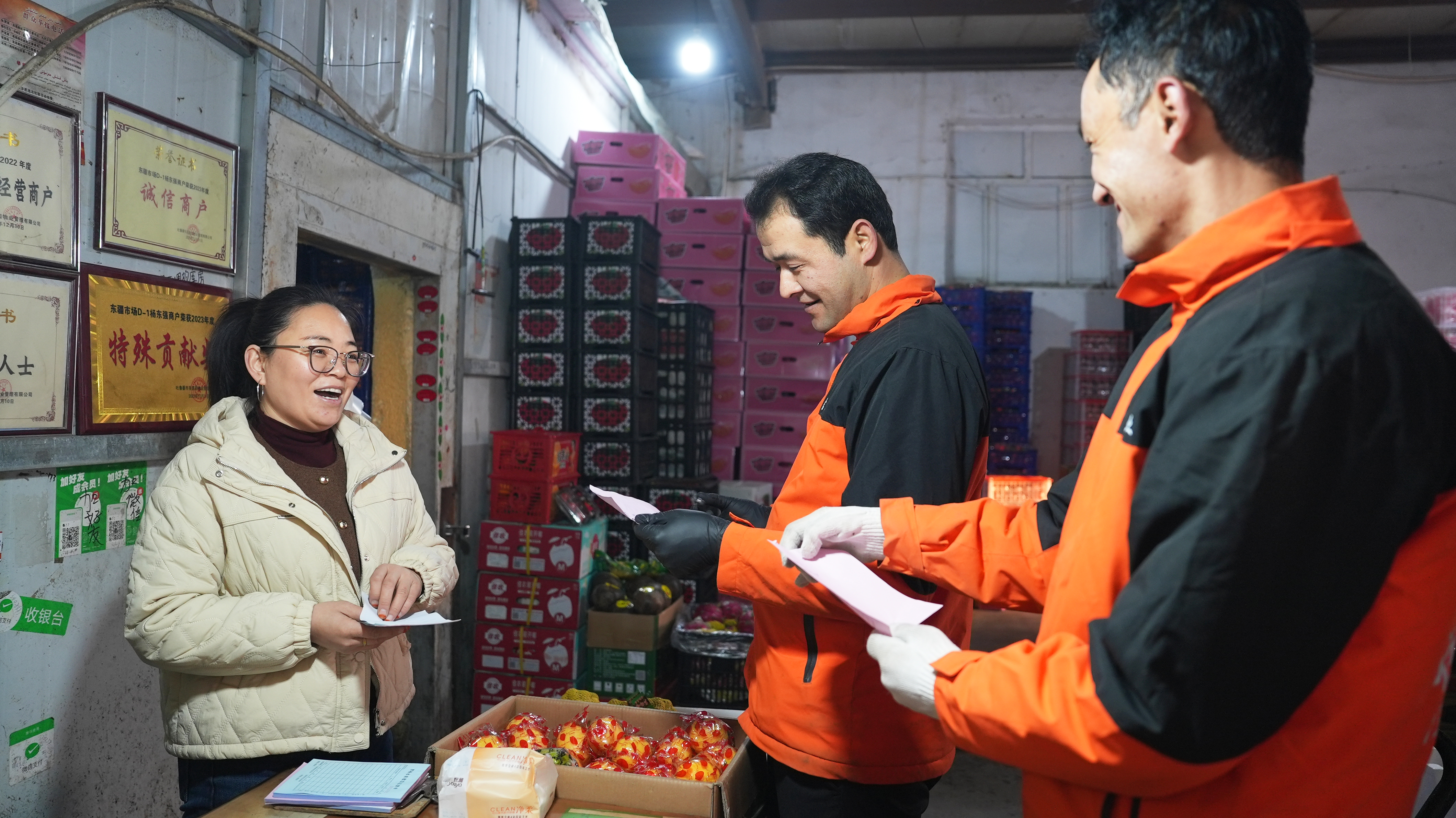 杨宁今年39岁,是这家水果店的第二代经营者。自2017年从父亲手中接过这家店,她的生活就被忙碌的生意所填满。每天清晨到店理货、接单、招呼顾客,直到晚上七点半才能歇下来。每周四到周日是店里最忙碌的日子,她更是忙得连轴转。杨宁的丈夫则承担起进货的重任,每两天就要往返乌鲁木齐一次,搭乘车辆去,再跟着满载新鲜水果的货车星夜赶回。夫妻俩默契配合,将这家传承了20余年的水果店打理得井井有条。