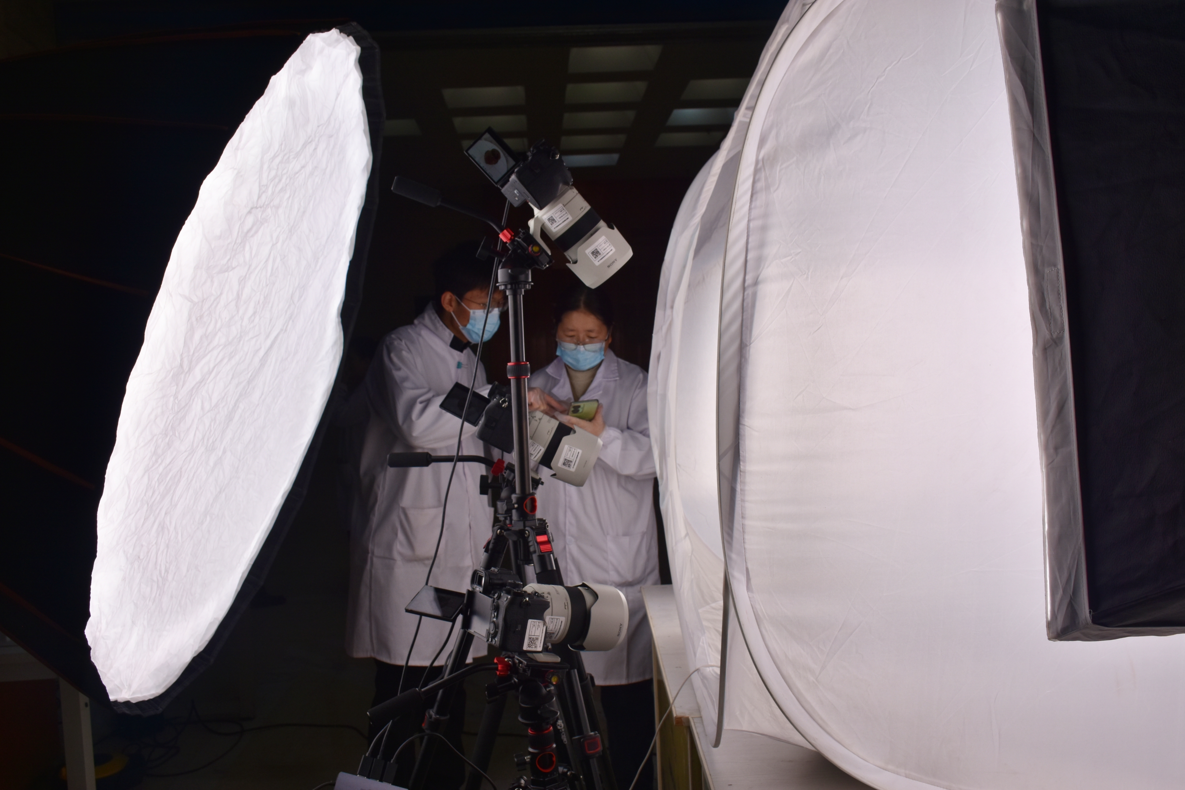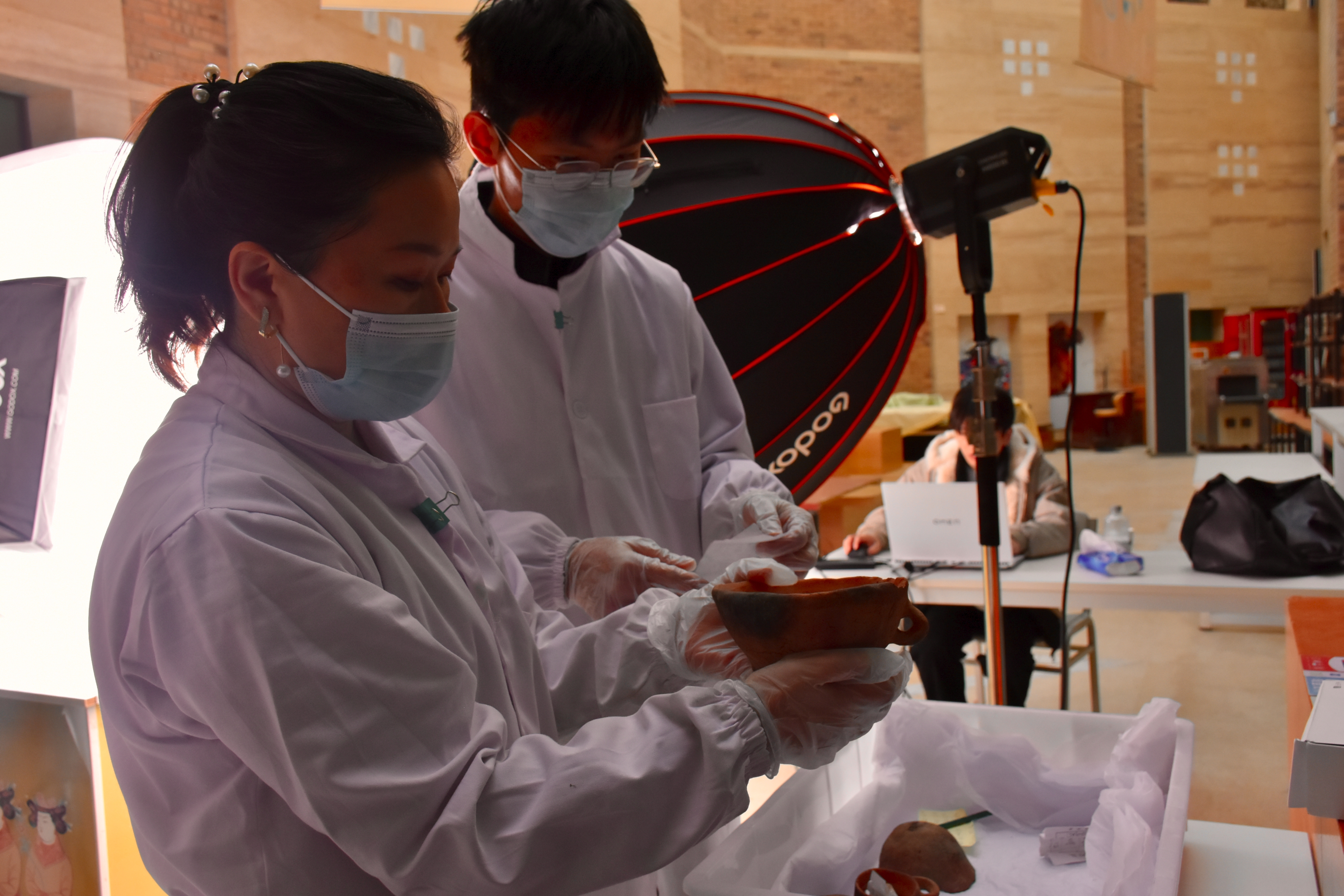 工作人员将文物放至拍摄台。吐鲁番市融媒体中心记者 加帕尔 摄