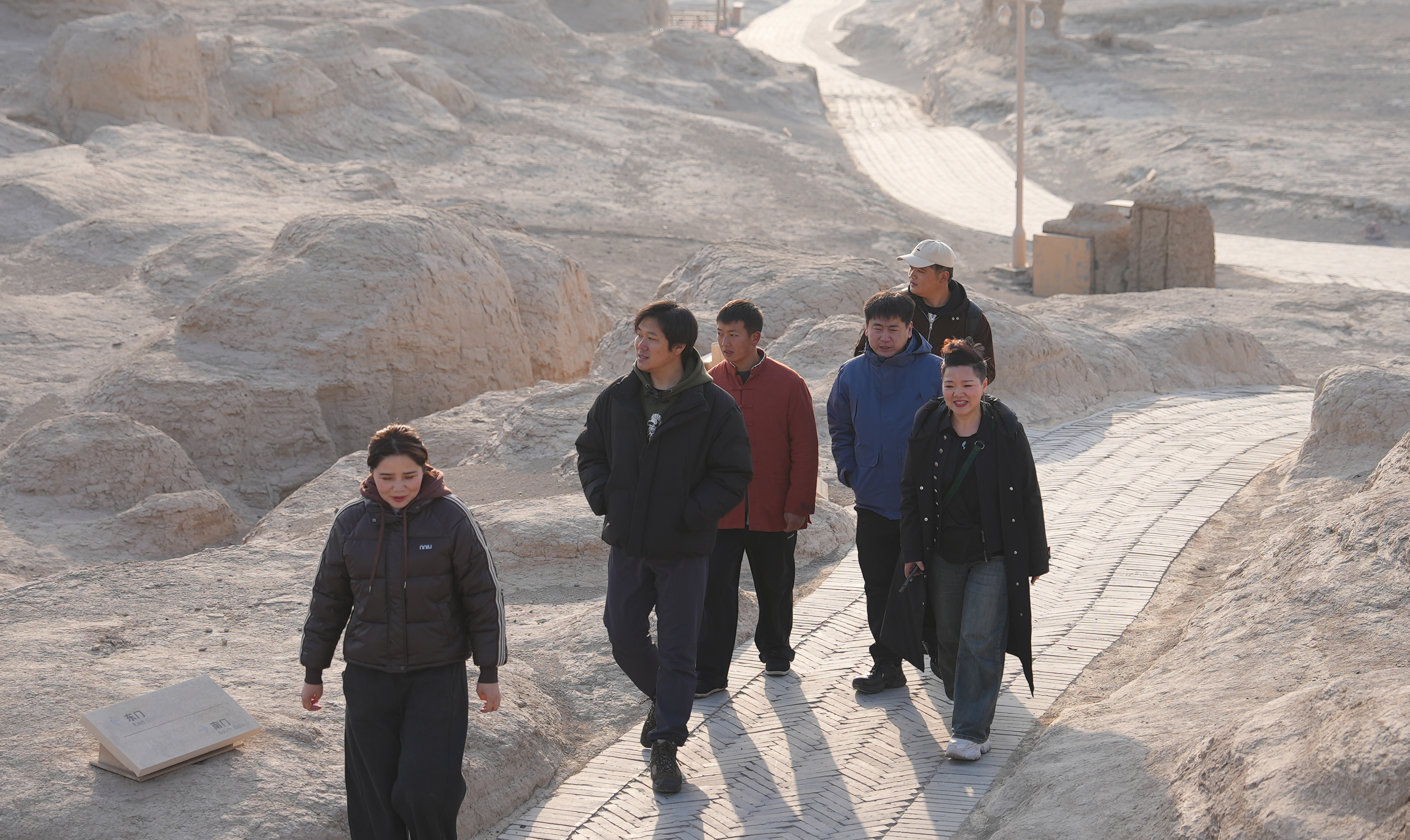 吐鲁番市融媒体中心讯(文/图 记者 谢懂飞)12月16日,湖南广播电视台国际频道总监蔡莲花与“山白”短视频团队抵达吐鲁番,开展创作采风活动。一行人先后深入交河故城、坎儿井乐园、吐峪沟古村及库木塔格沙漠景区等地,沉浸式感受当地厚重的历史文脉与独特的自然风貌,为短视频创作积累素材、汲取灵感。