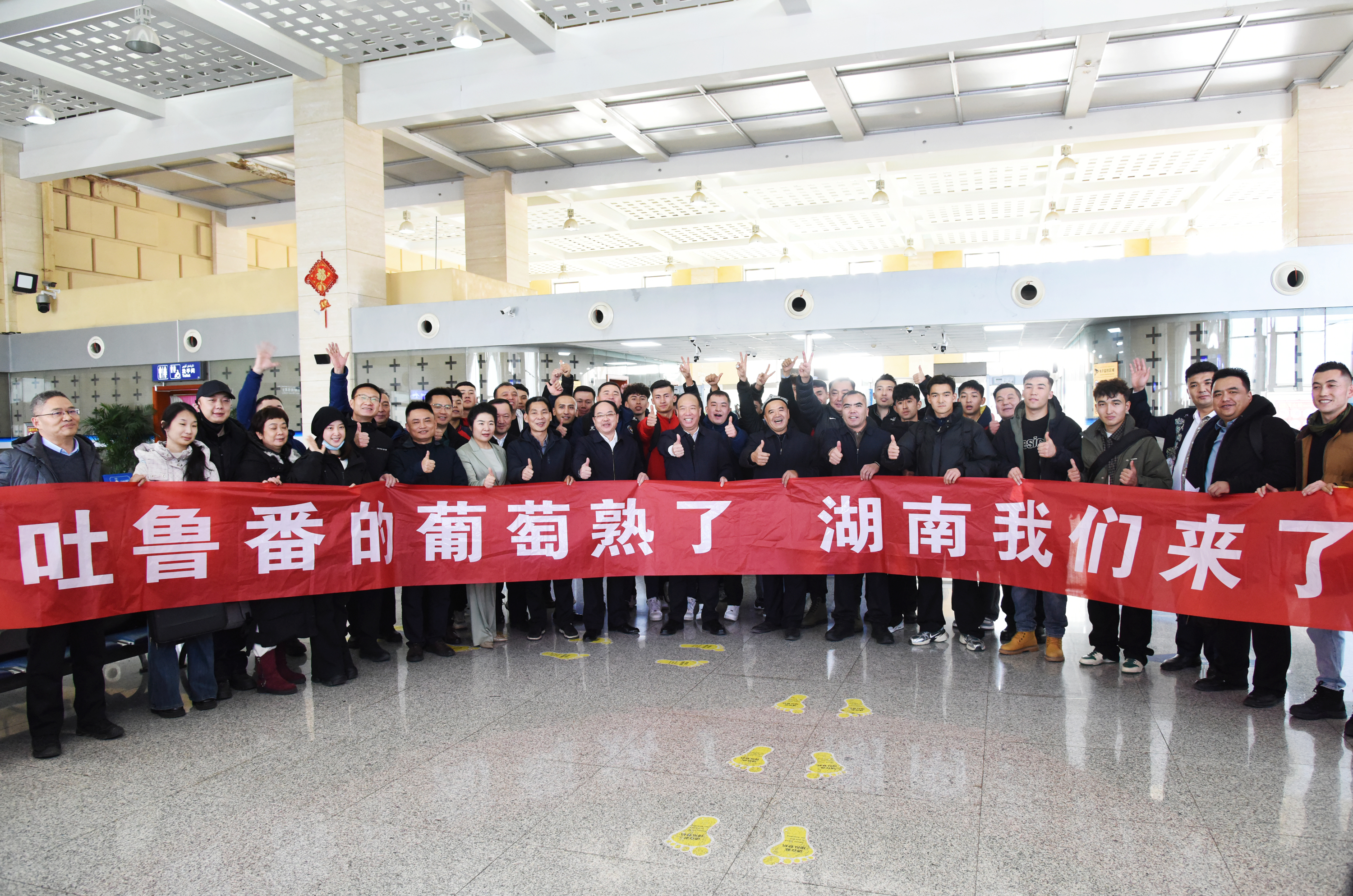 候机室内,吐鲁番歌舞剧团演员身着绚丽民族服饰,献上具有地域风情的舞蹈,欢迎前来迎接吐鲁番足球队赴湖南参加湘超友谊赛的杨维一行。欢快的旋律、灵动的舞姿,赢得现场阵阵掌声。大家手拉手载歌载舞,欢声笑语间,“湘吐一家亲”的深厚情谊展现得淋漓尽致,为球队踏上征程增添了浓浓温情。