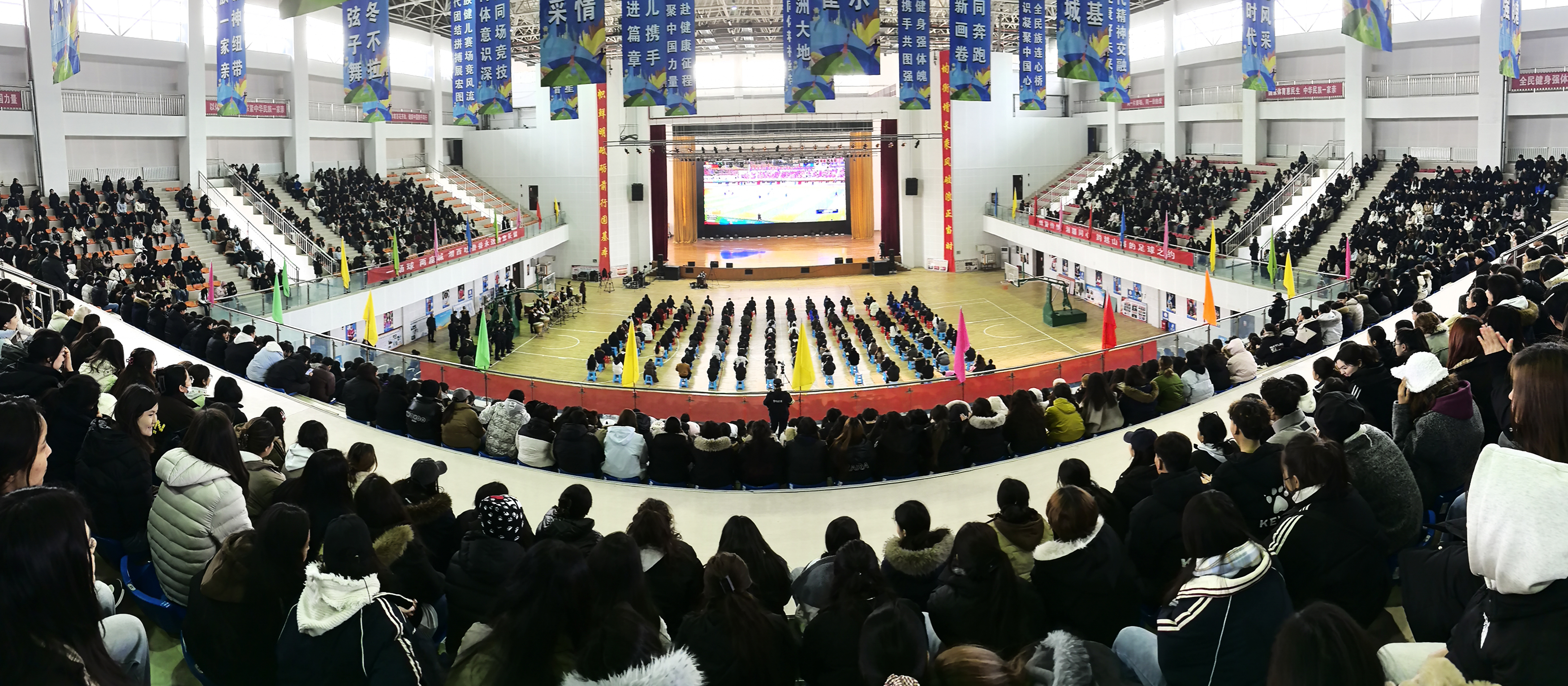 图为吐鲁番职业技术学院体艺馆直播观赛现场。吐鲁番市融媒体中心记者 刘健 摄