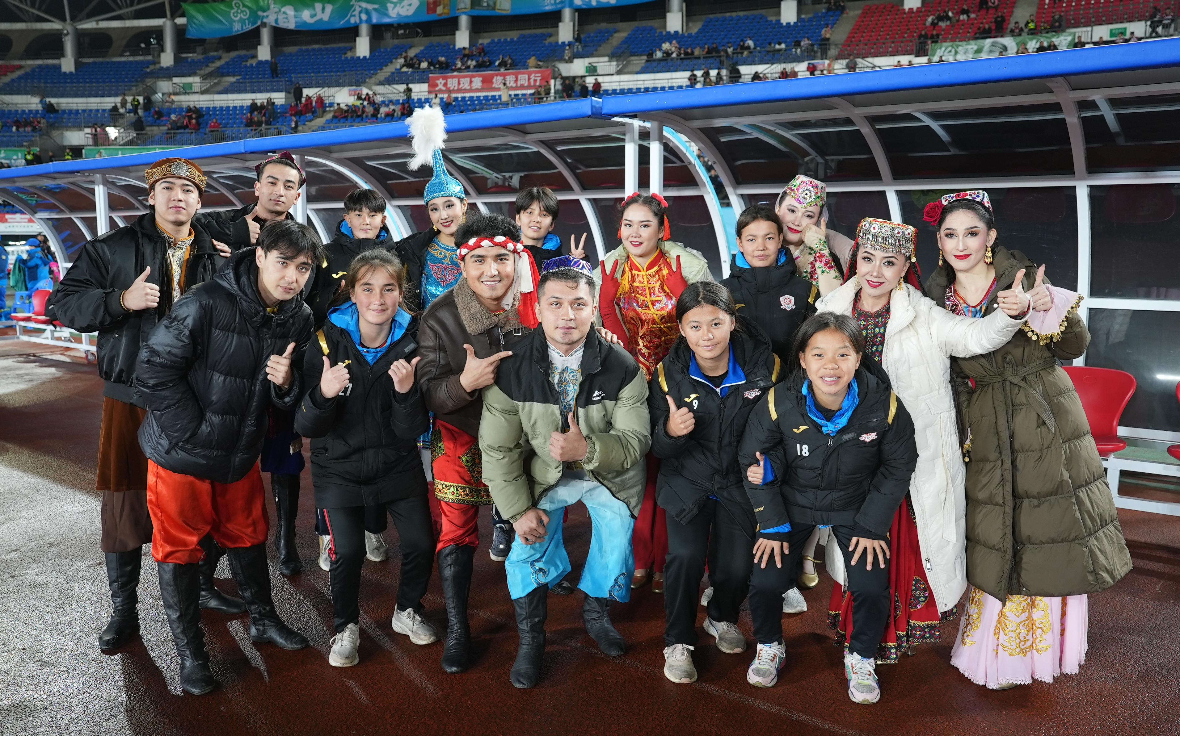 12月23日,部分新疆籍女足队员与吐鲁番歌舞演员合影留念。吐鲁番市融媒体中心记者 谢懂飞 摄