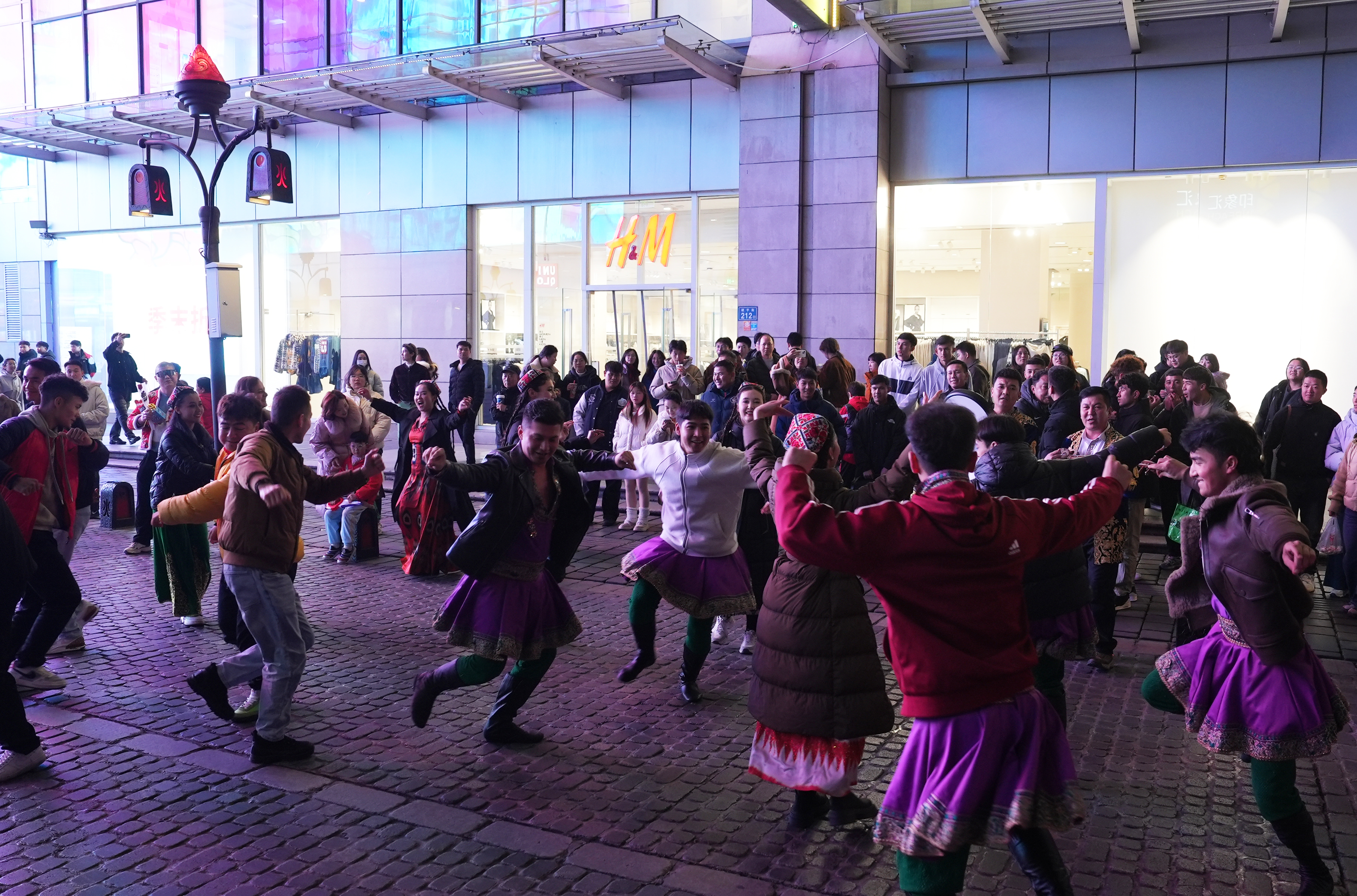 12月26日,吐鲁番歌舞剧团舞蹈演员在长沙街头跳舞。吐鲁番市融媒体中心记者 谢懂飞 摄