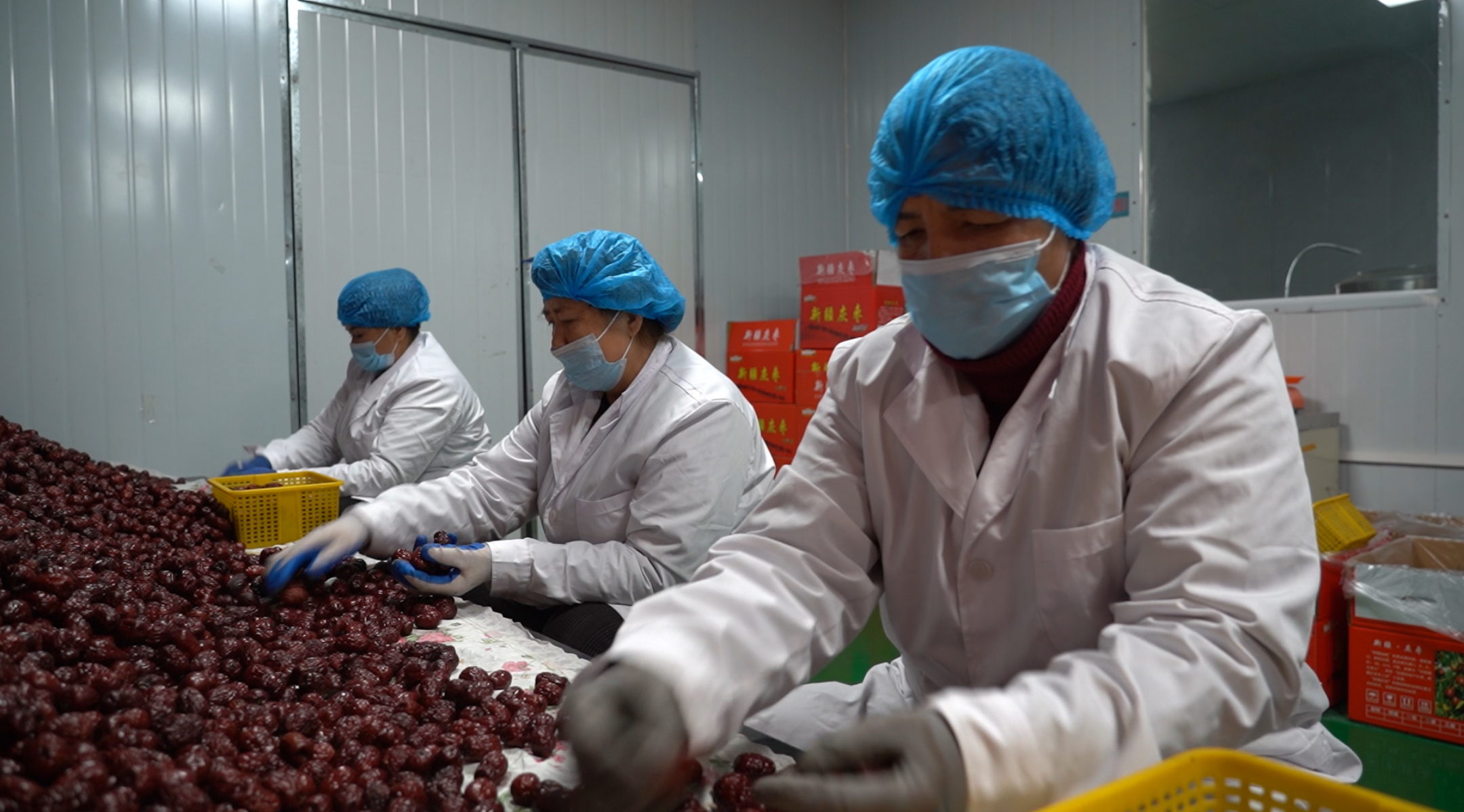 合作社员工正在分选红枣。吐鲁番市融媒体中心记者 买迪努尔 摄