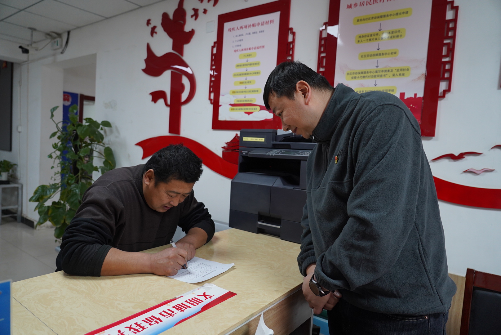 社区干部在帮居民填写表格。吐鲁番市融媒体中心记者 买迪努尔 摄