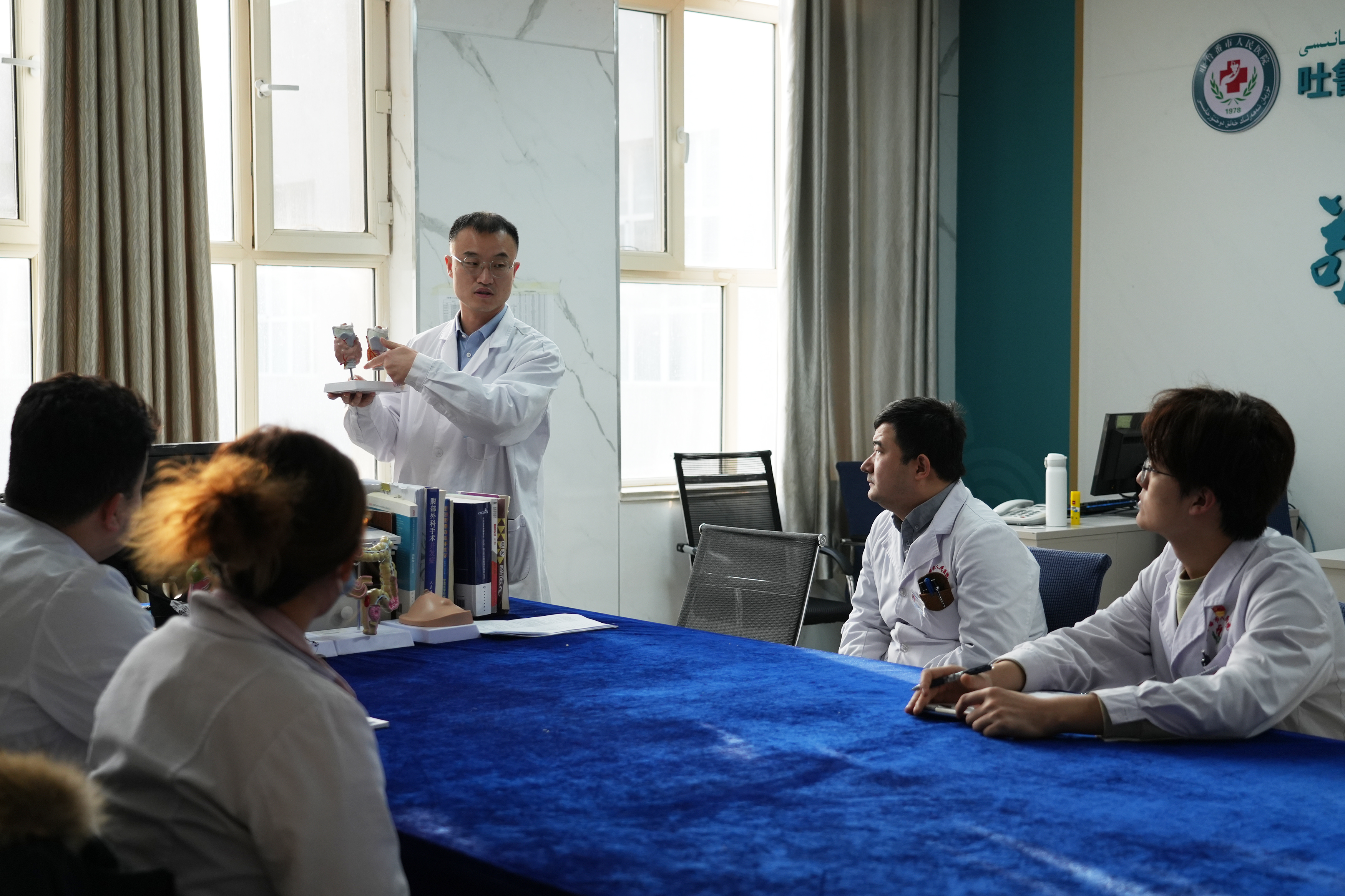 在吕春柳看来,“授人以鱼不如授人以渔”,打造一支“带不走的医疗队”是援疆的核心目标。他根据科室成员情况量身定制培训计划,从理论到实操倾囊相授。截至目前,他已开展科室授课8次,组织疑难病例讨论30余次。