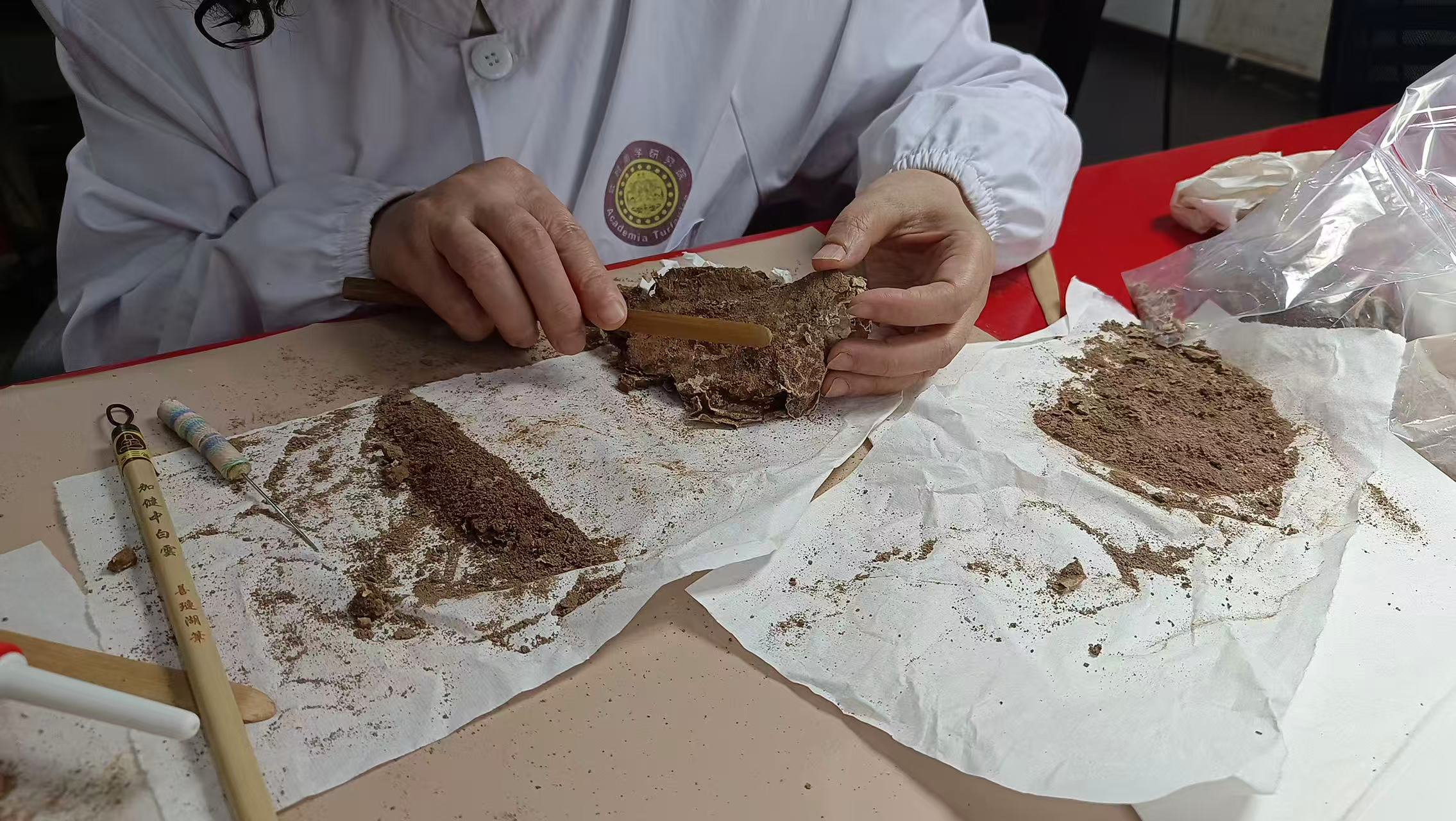吐鲁番市文博院文物修复研究部副研究馆员陈玉珍介绍,这些文书在地下埋藏上千年,部分文书胶结成块,外面裹满泥垢,有些已糟朽断裂成指甲盖大小的碎片,修复难度极大。尤其是吐峪沟石窟出土的部分文书残片,表面胶结物覆盖严重,纸质脆弱易碎,揭展十分困难。修复人员尝试多种办法、进行了多次实验,最终顺利清除文书上的胶结物。