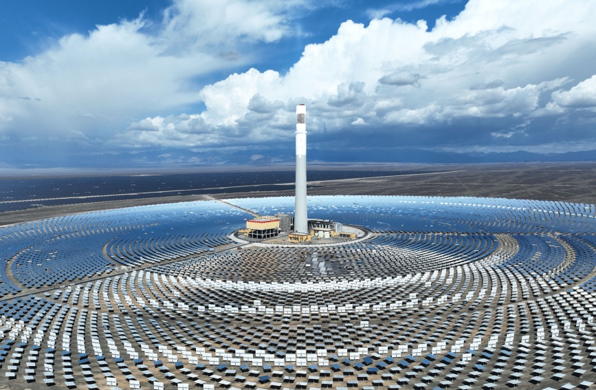 国家电投吐鲁番1GW光热+光伏一体化项目现场(航拍图)。刘健摄