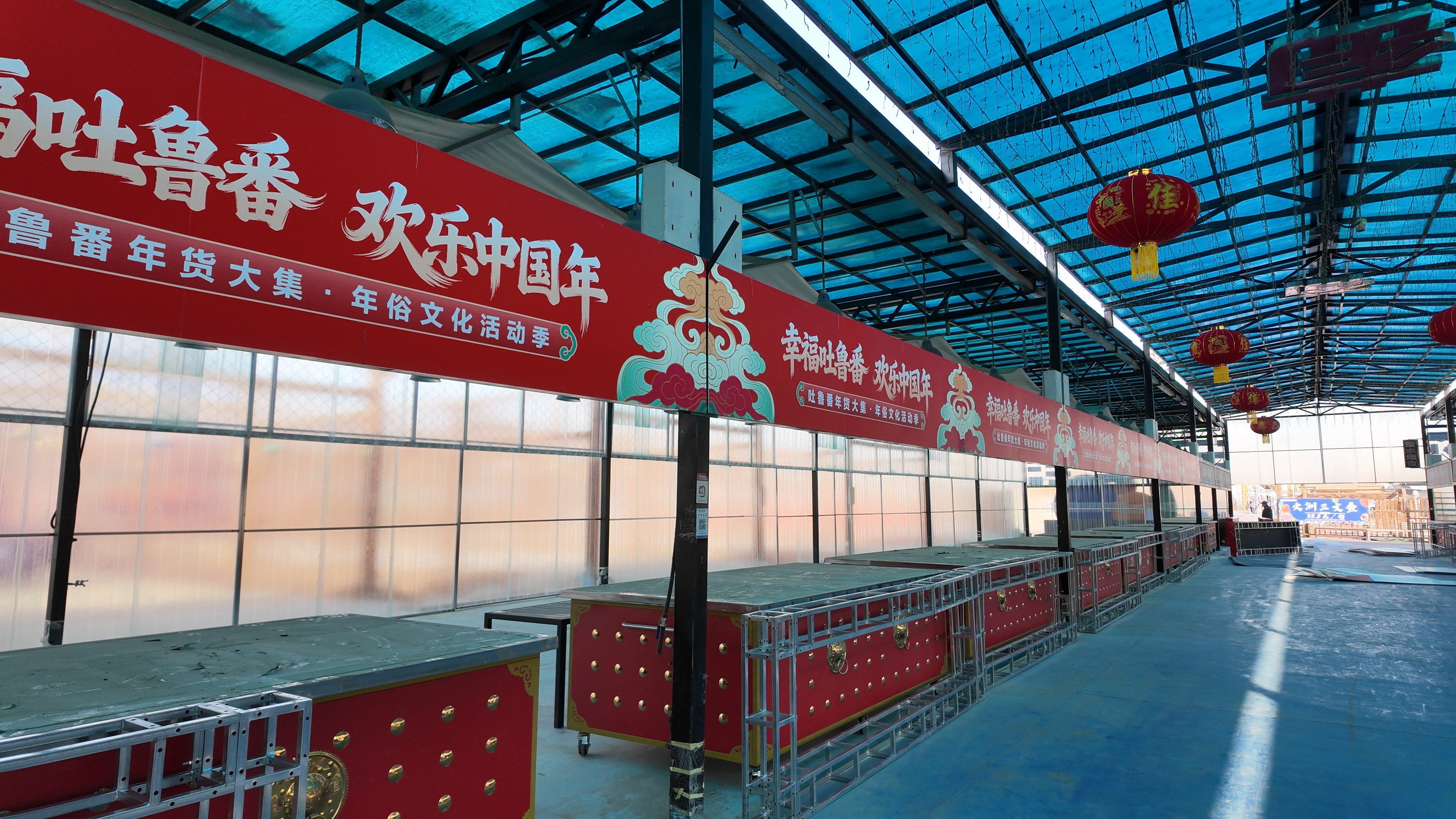 已经搭建好的年货大集展台。高昌区融媒体中心记者 胡源 摄