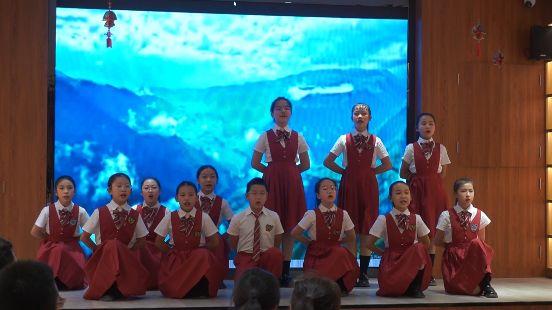 高昌区第九小学的表演《毛泽东诗词经典串烧》。