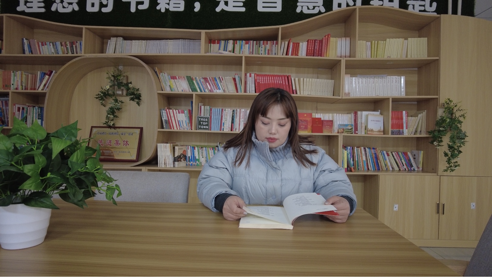 托克逊县夏镇南湖村干部沙尼亚古丽·买买提正在读书。