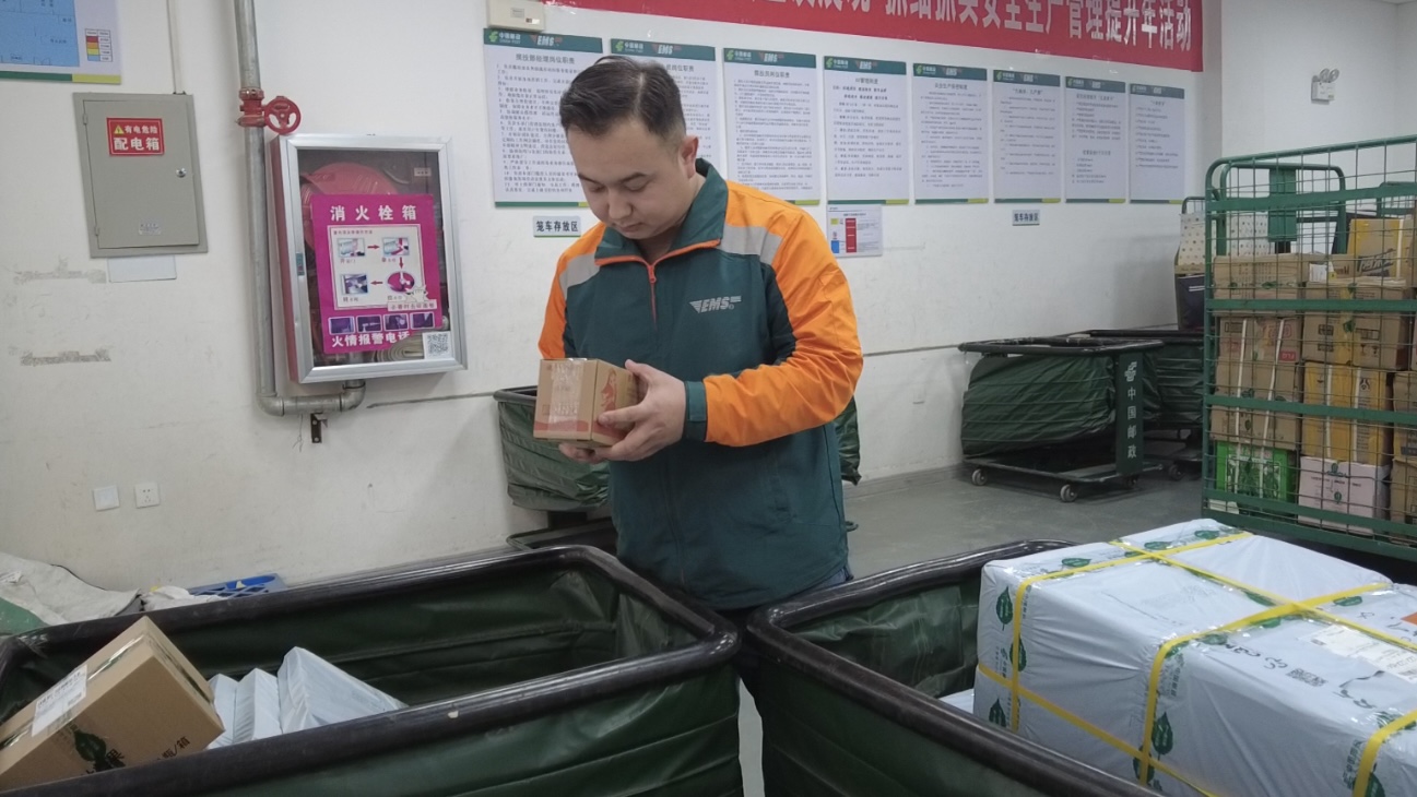 中国邮政集团有限公司吐鲁番市分公司西环路揽投部副经理介吾拉·吾吉艾合买提正在整理快递。吐鲁番市融媒体中心记者 买迪努尔 摄