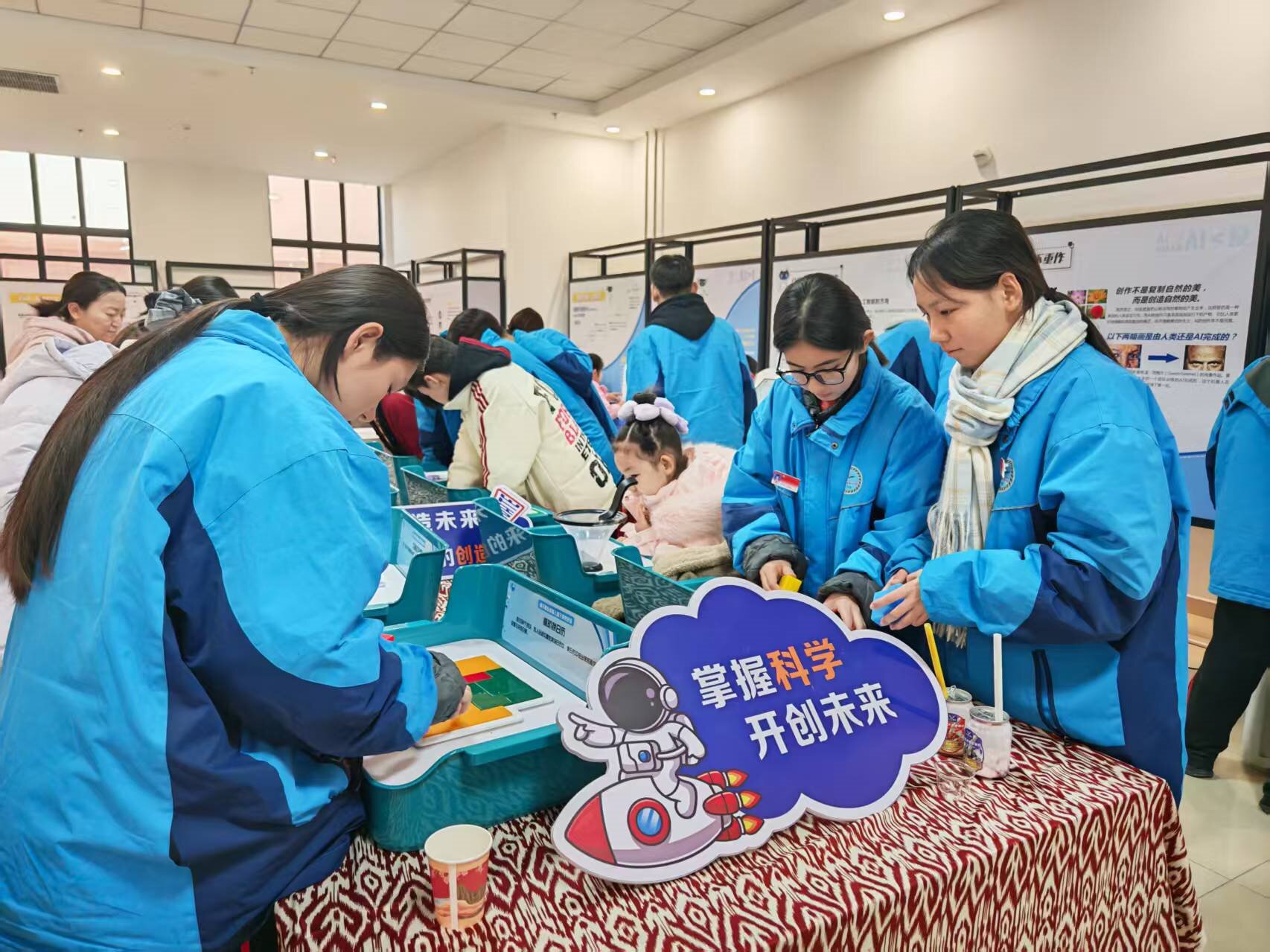 托克逊县第一中学学生在年货大集科技馆参观研学。