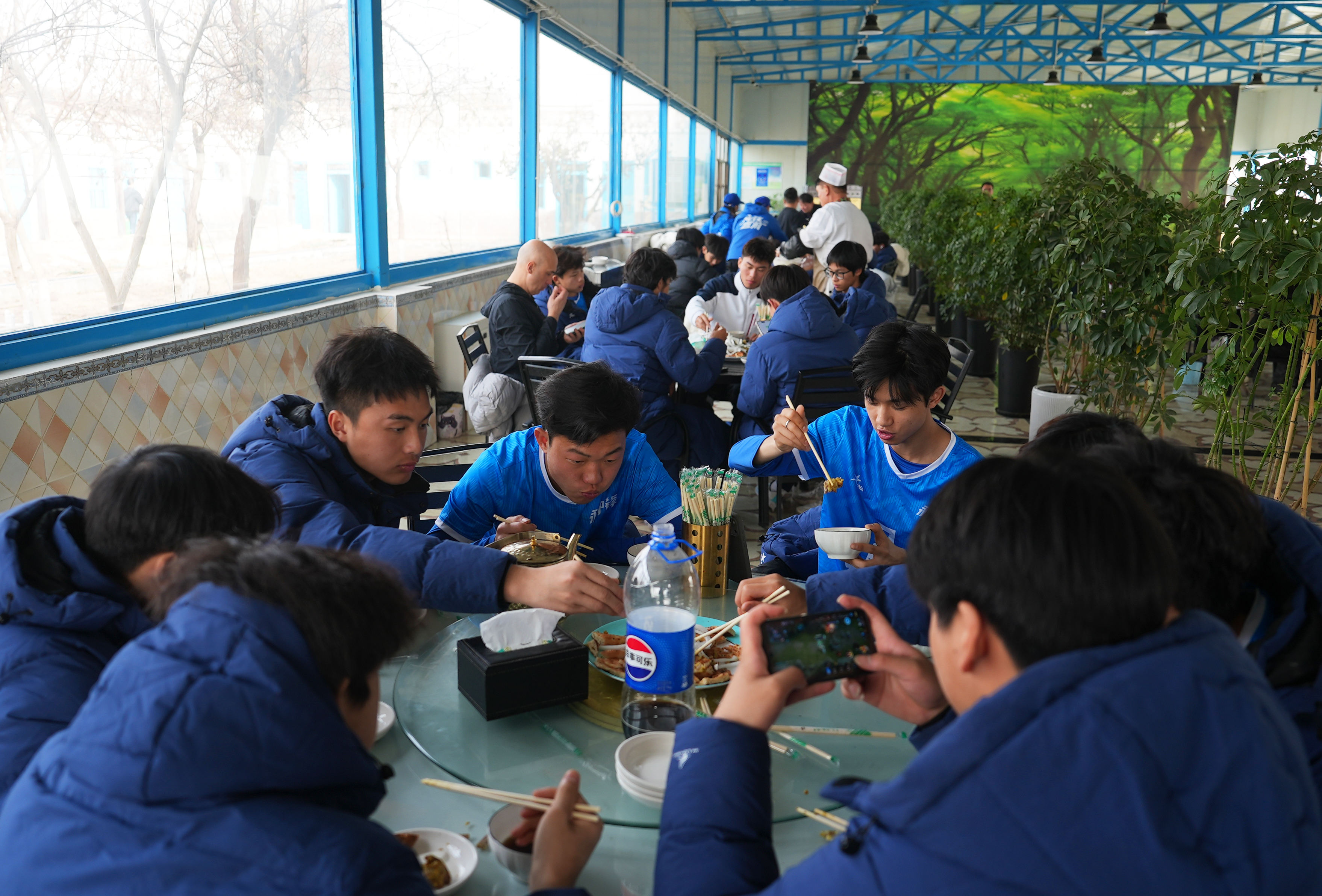 2月7日,队员们品尝吐鲁番特色美食。吐鲁番市融媒体中心记者 谢懂飞 摄