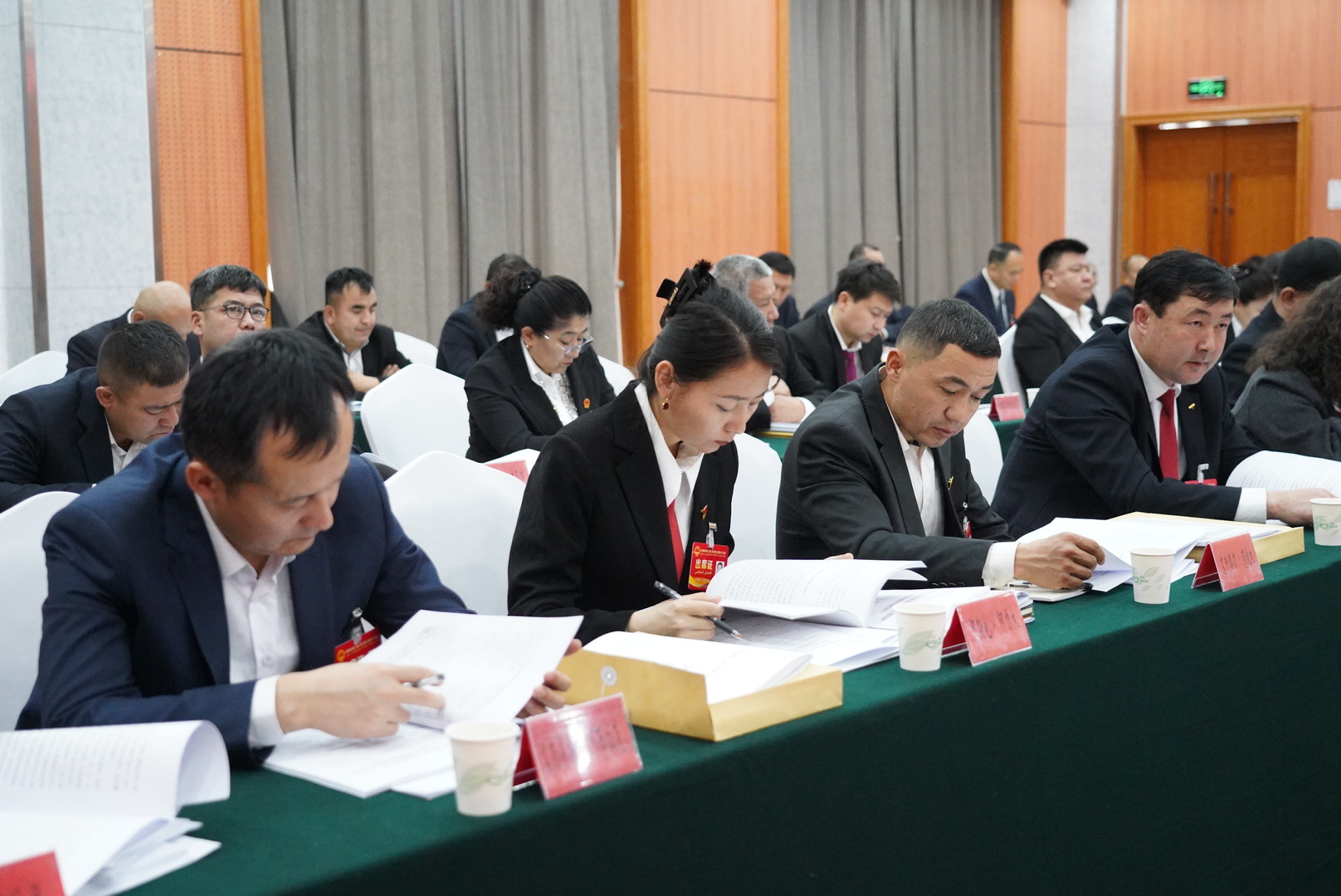 托克逊县代表团审议市人大常委会工作报告和“两院”工作报告。吐鲁番市融媒体中心记者 买迪努尔 摄