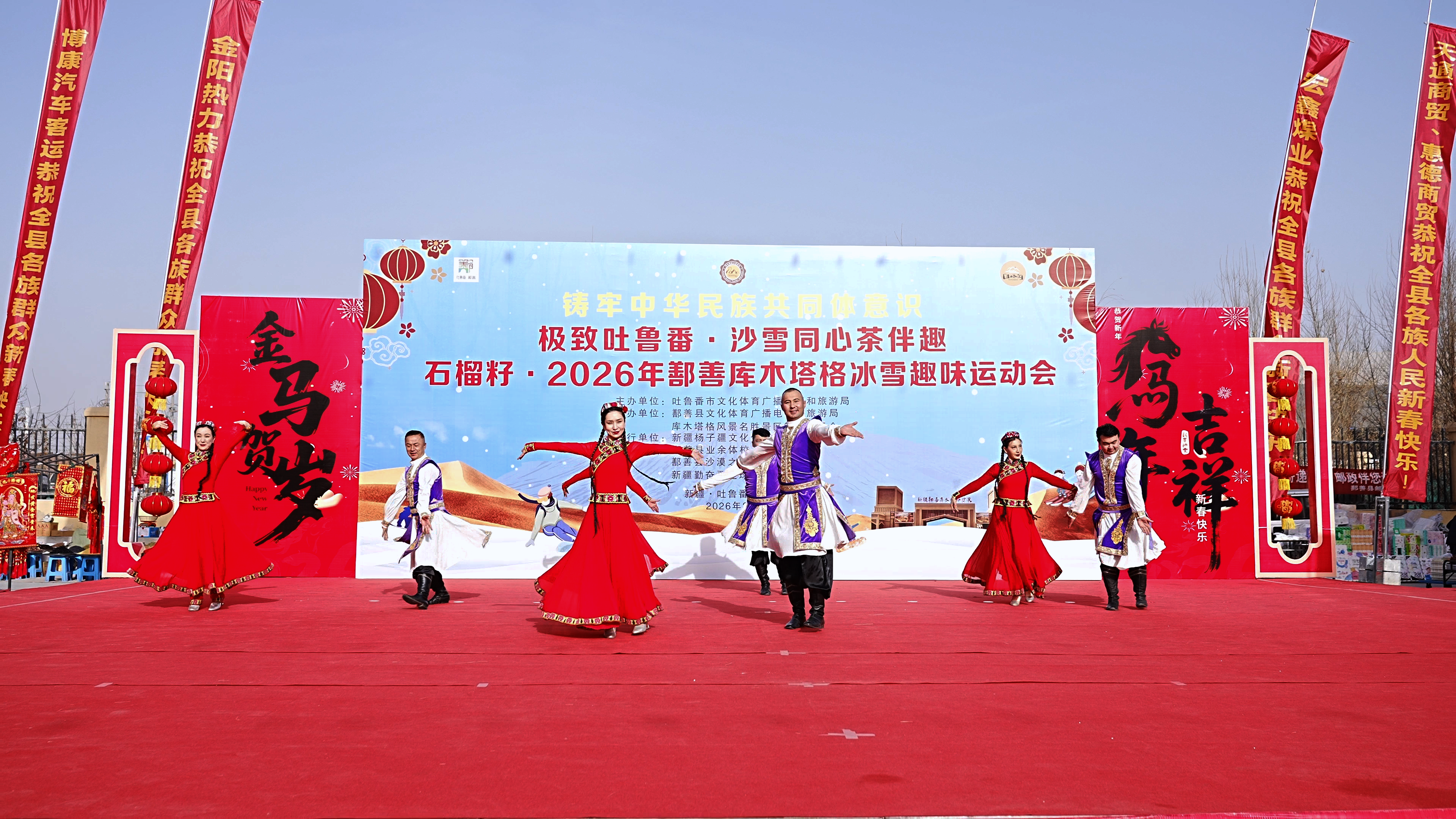 2月7日,“极致吐鲁番・沙雪同心茶伴趣‘石榴籽・2026年鄯善库木塔格冰雪趣味运动会’”在鄯善县年货大集热闹启幕。活动融合冰雪运动、特色下午茶、歌舞表演与特色美食,为游客与居民带来了一场集观览、游玩、品味于一体的沉浸式文旅盛宴。