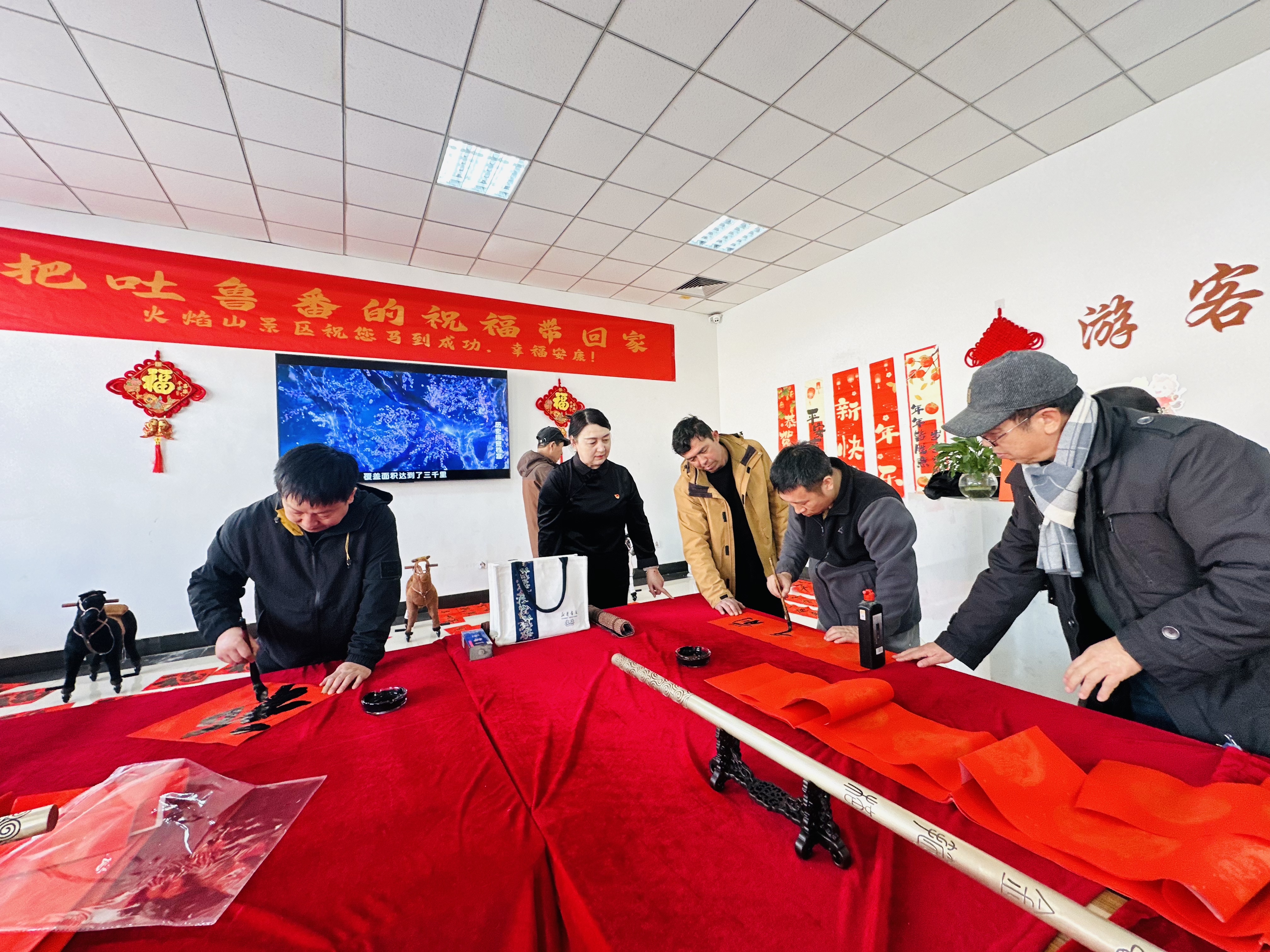 吐鲁番市融媒体中心讯(文/图 记者 阿地兰)2月10日,吐鲁番市文联携手市书法家协会走进火焰山景区,开展“把吐鲁番的祝福带回家”主题活动。书法家们现场挥毫泼墨,为市民和游客书写春联、福字,让传统文化与新春暖意在火焰山脚下交织升腾。