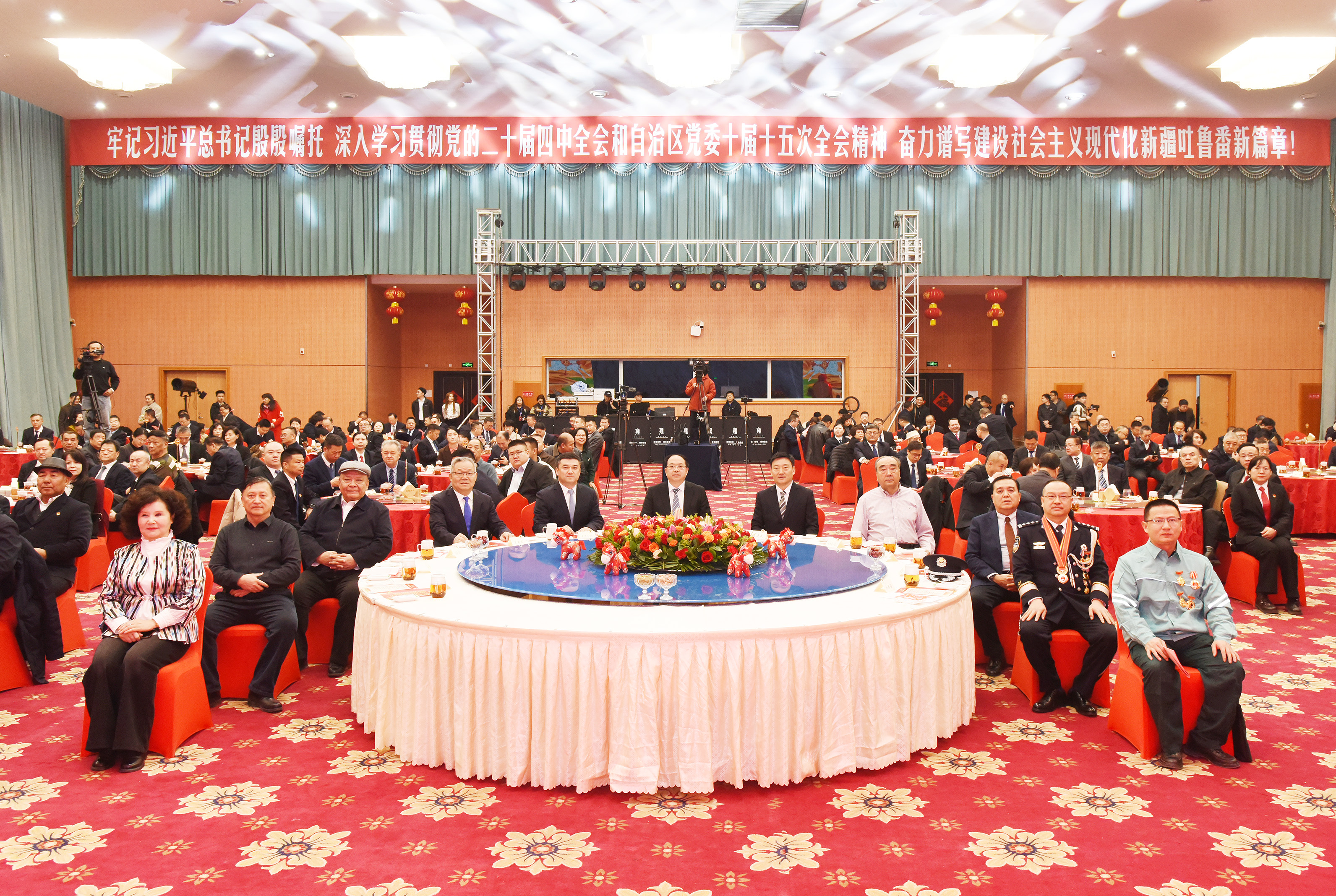 2月12日,吐鲁番市举行2026年新春团拜会。图为各族各界代表欢聚一堂,喜庆佳节。吐鲁番市融媒体中心记者 刘健 摄。