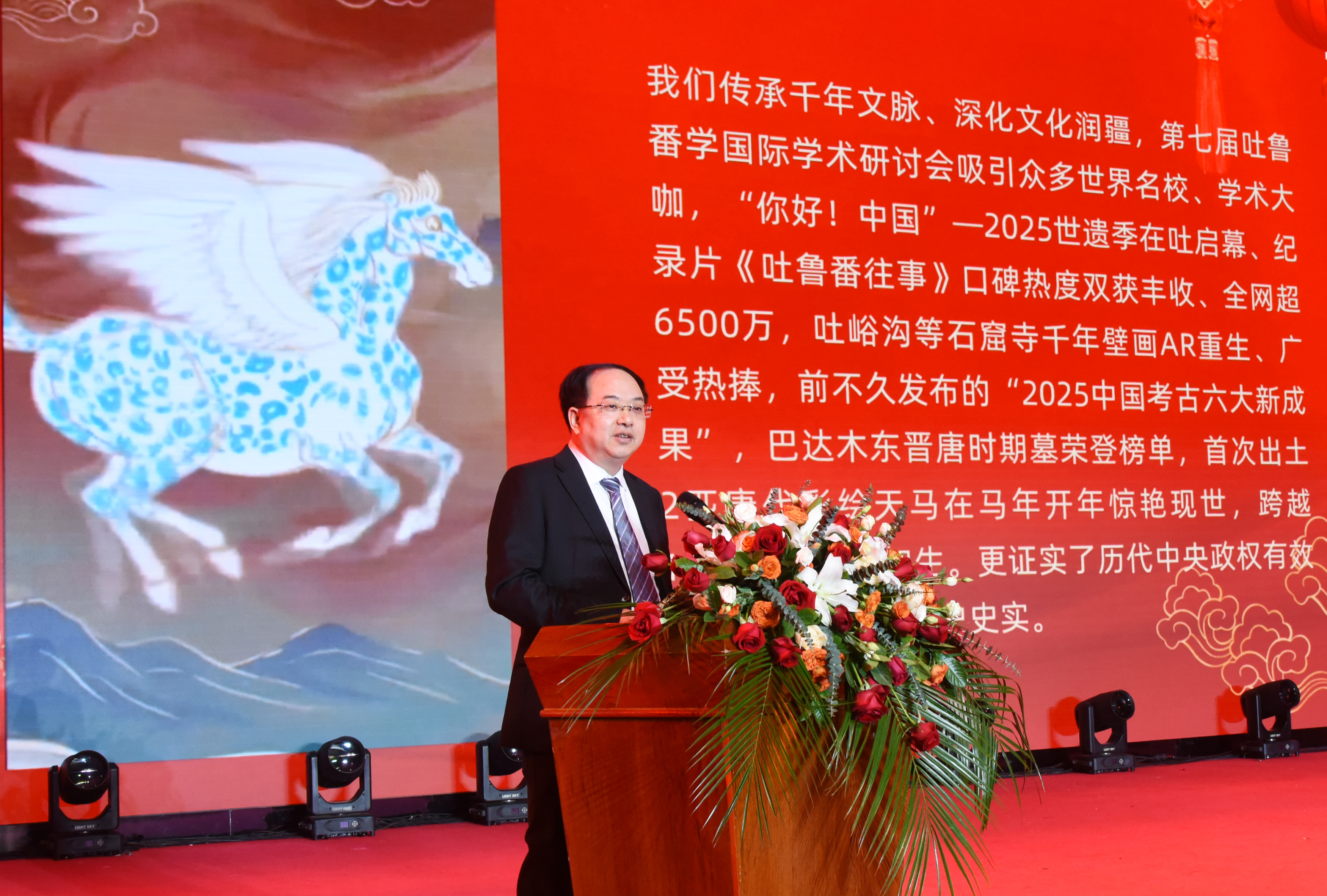 文天平和西尔艾力·外力现场祝全市各族干部群众,驻吐鲁番人民解放军指战员、武警官兵、公安干警、消防救援队伍,工商联、无党派人士、各人民团体,专家学者、先进模范等各界人士,老领导、老同志,中央、自治区驻吐鲁番单位干部职工和广大援疆干部火马天马、幸福加码,天马腾空、马到成功!马年吉祥!