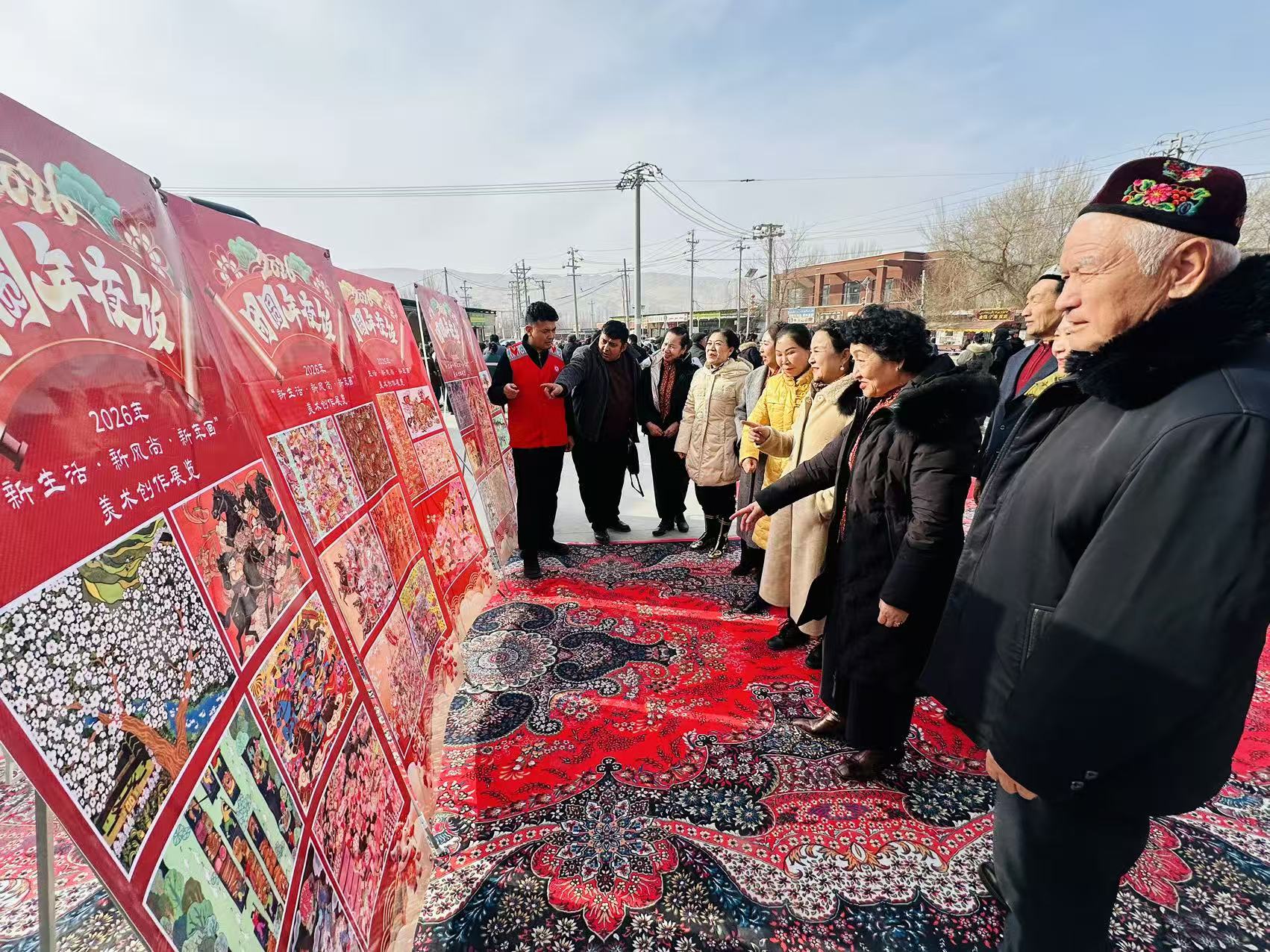 吐鲁番市融媒体中心讯(文/图 记者 阿地兰)2月14日,吐鲁番市文化馆主办的2026年“新生活·新风尚·新年画”美术创作展览活动走进高昌区胜金乡。展览以笔墨绘时代、以年画贺新春,为当地群众带来一场精彩的新春文化盛宴。