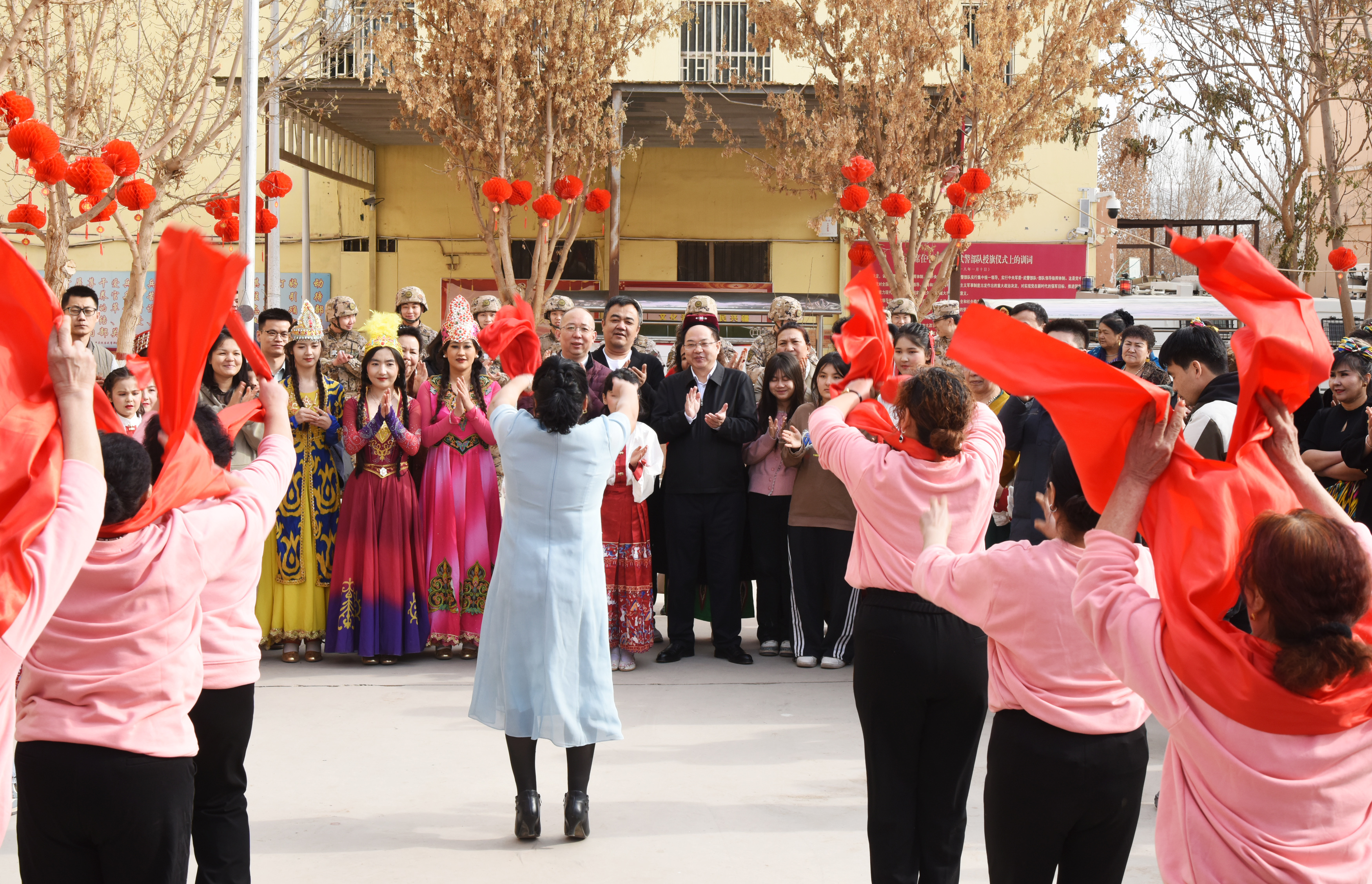 2月13日,市委书记文天平深入一线调研安全稳定看望慰问基层干部群众。图为文天平与英买里村各族干部群众一起庆祝新春佳节的到来。吐鲁番市融媒体中心记者 刘健 摄