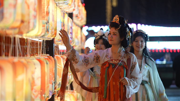 市民盛装逛灯会。