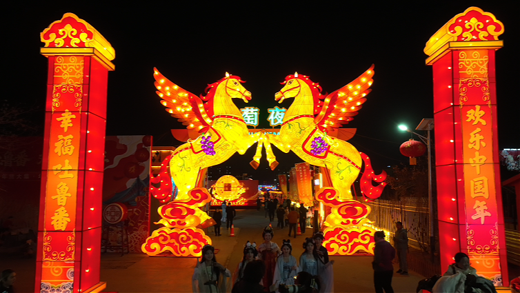 2月15日晚,“幸福吐鲁番 欢乐中国年”马年灯会在吐鲁番葡萄夜市璀璨开幕。数千盏花灯点亮夜空,为市民游客带来视觉盛宴,让历史文化名城洋溢浓浓年味。