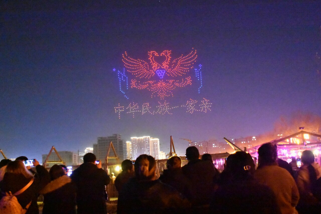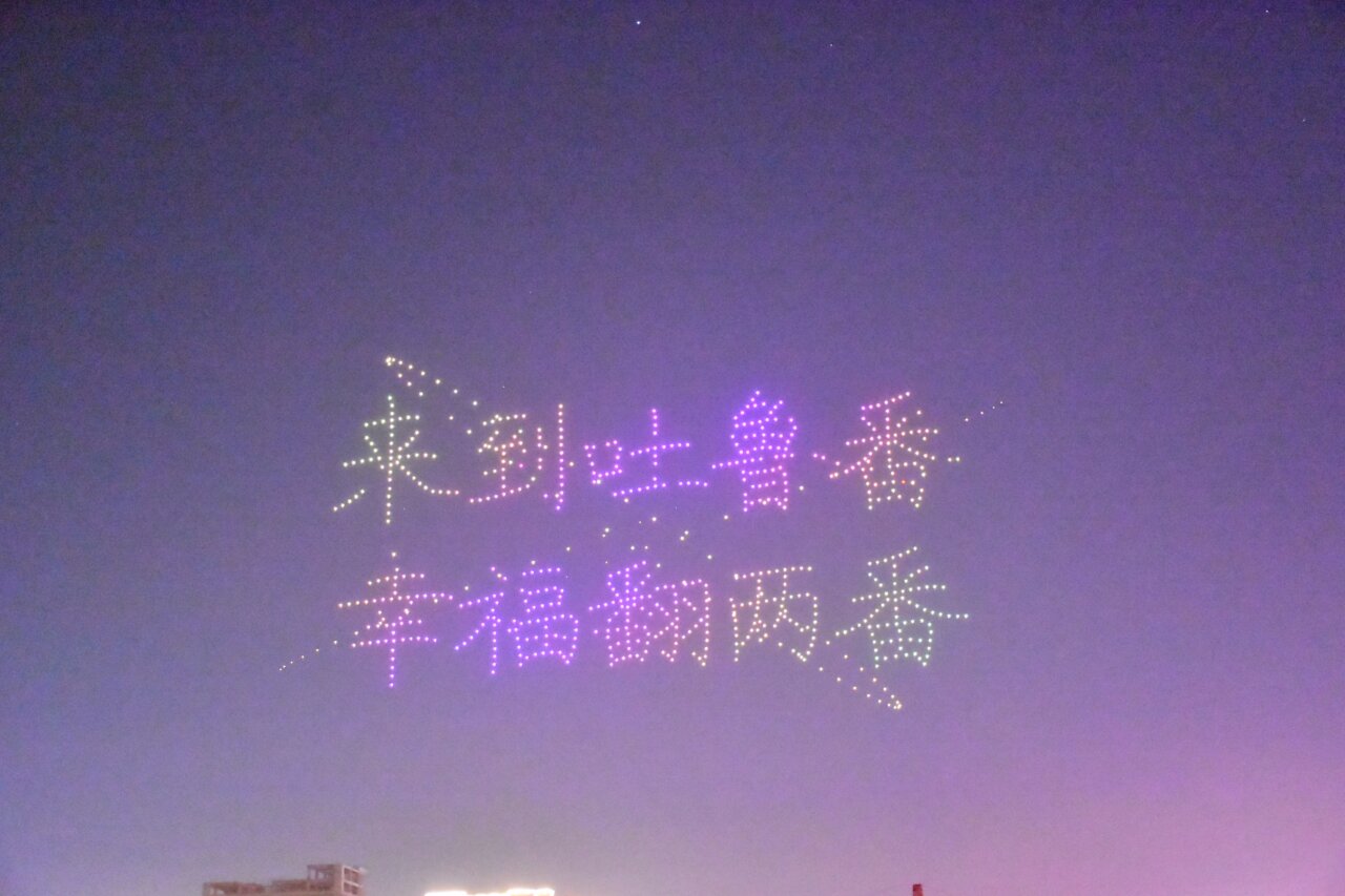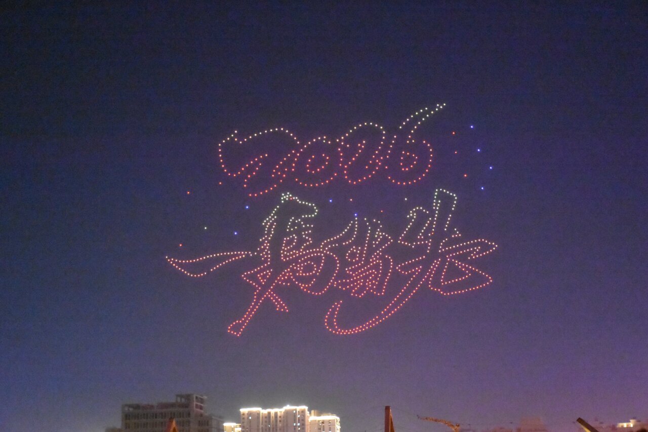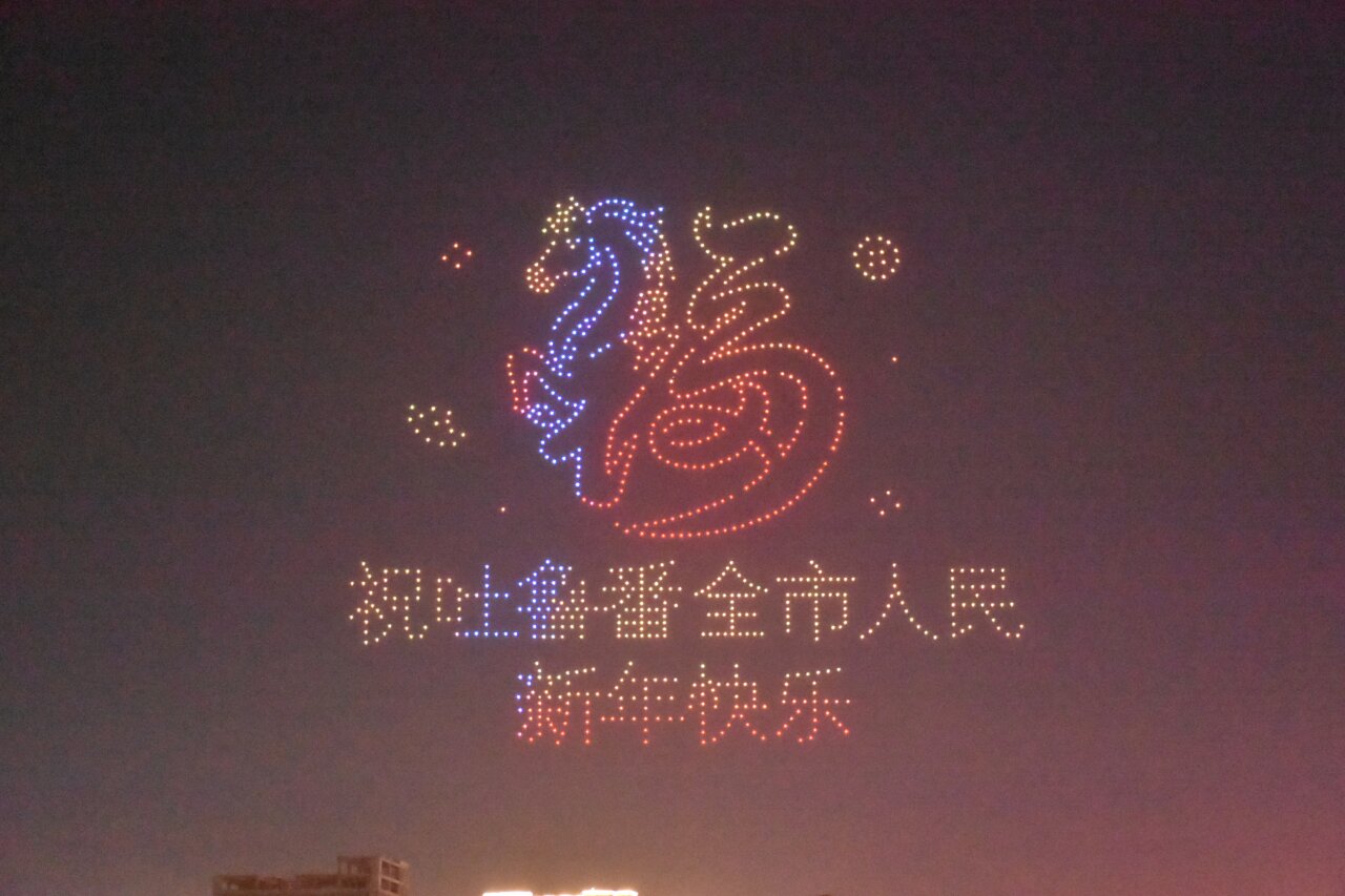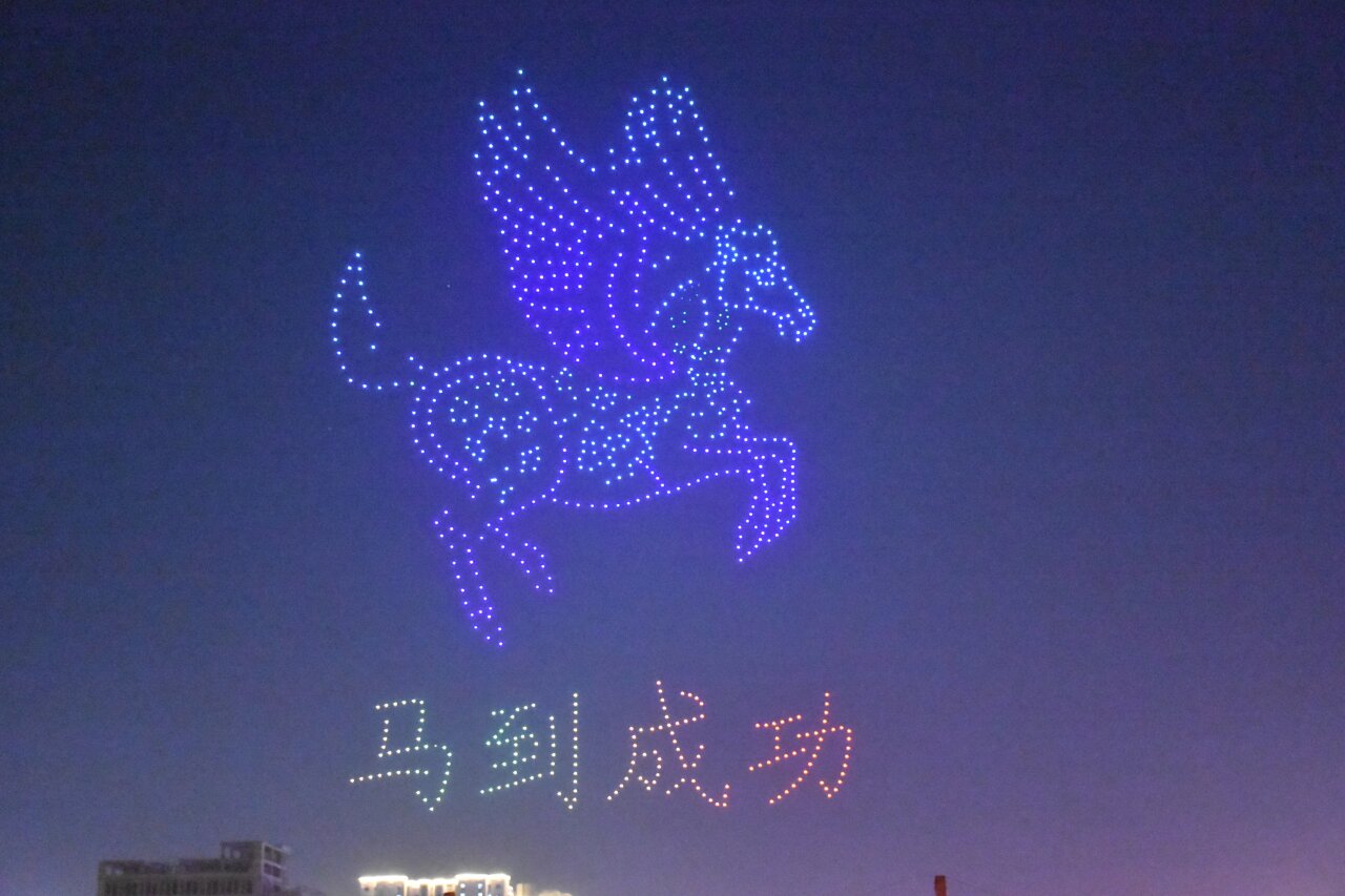 无人机表演“马到成功”。吐鲁番市融媒体中心记者 加帕尔 摄