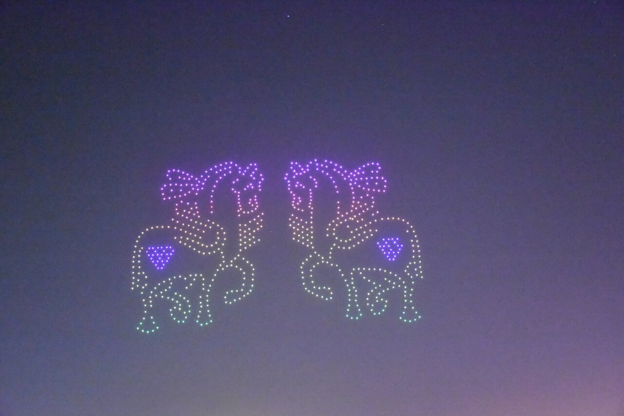无人机表演相向而立的双马。吐鲁番市融媒体中心记者 加帕尔 摄