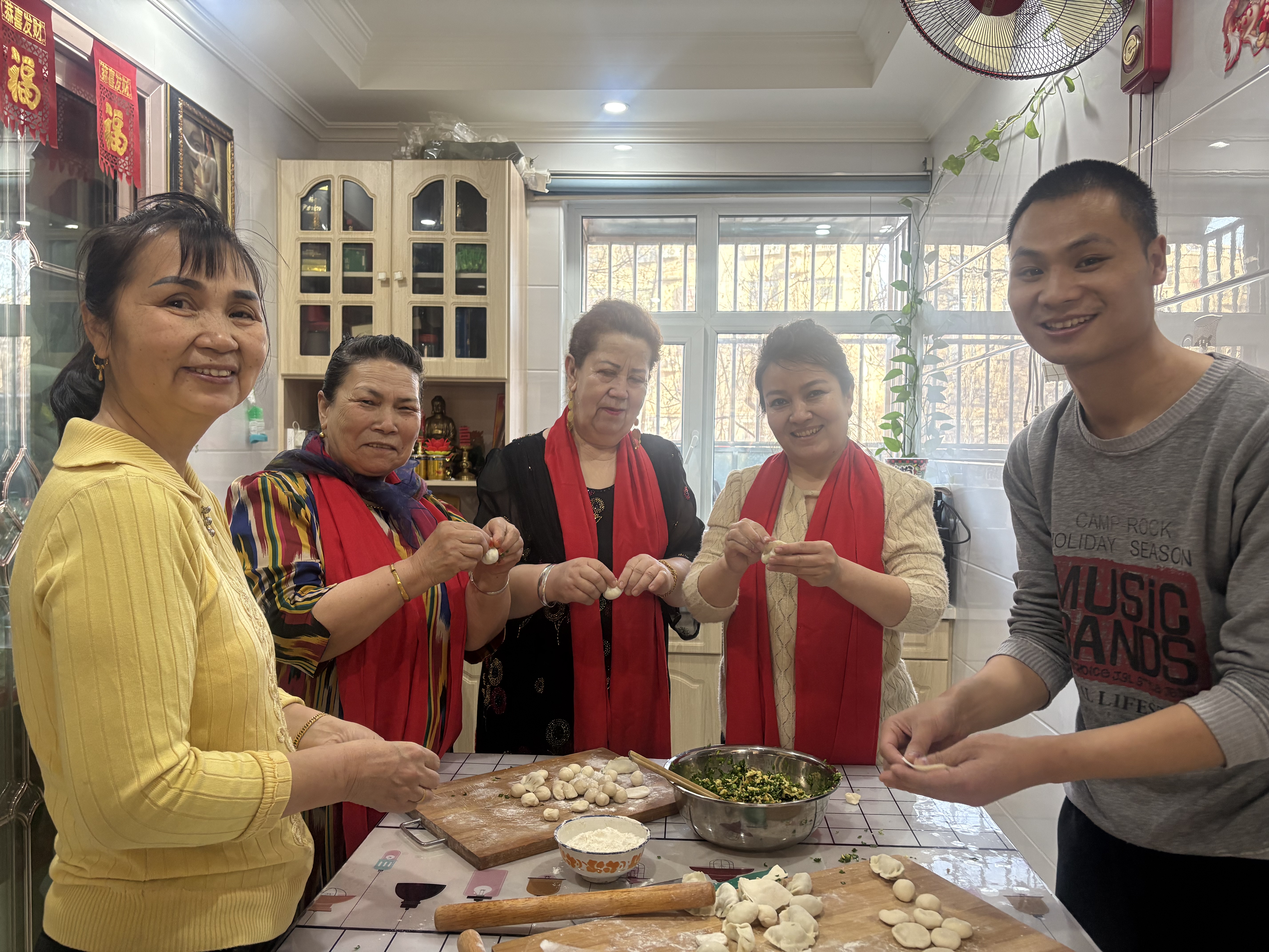 活动现场暖意融融、热闹非凡,大家一同包饺子、贴春联、载歌载舞、共话家常、互送祝福,民族团结一家亲的温馨画面成为了一道亮丽的风景线。