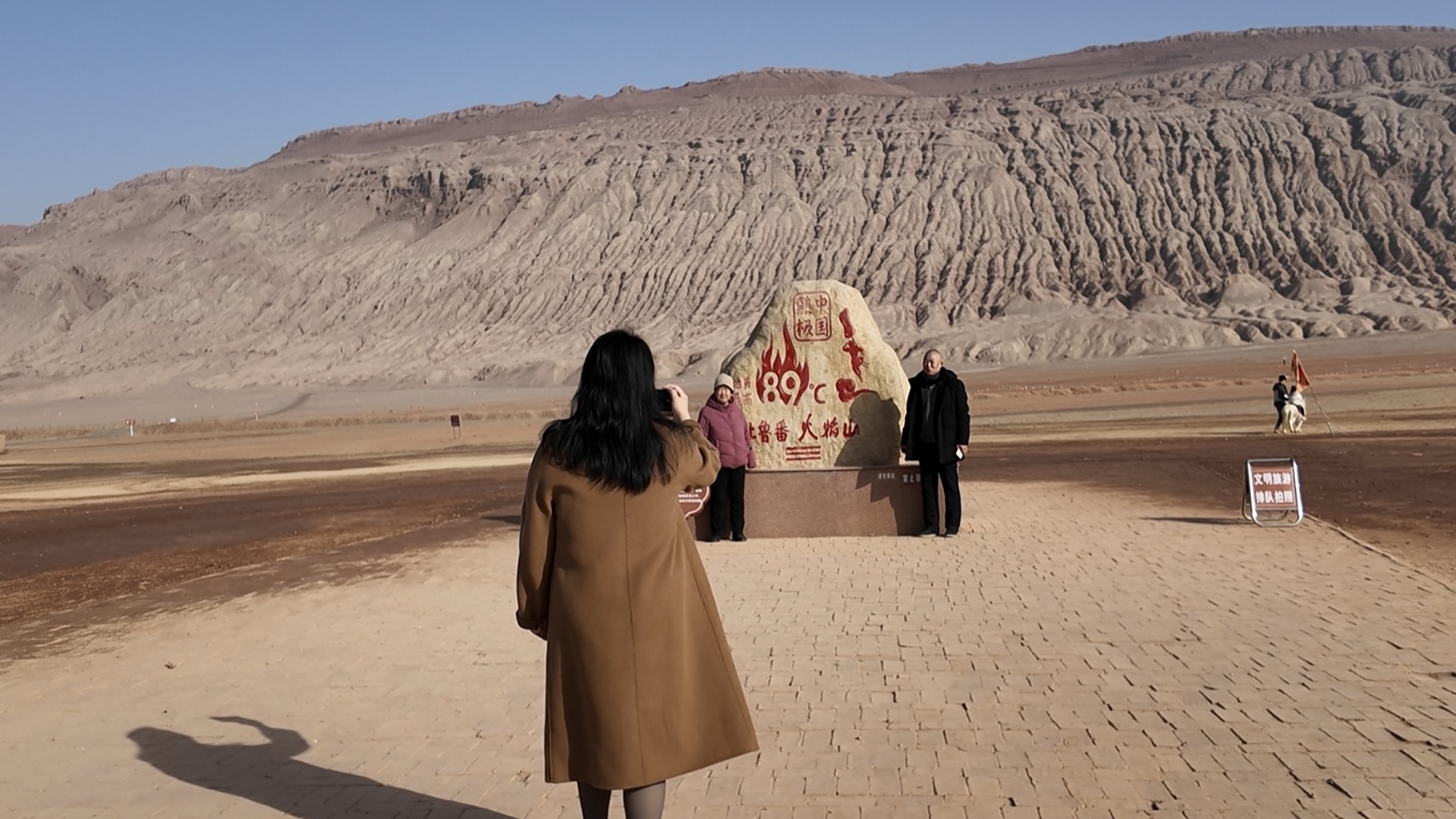 浙江游客段景泓说:“我从小就听过西游记里的火焰山,很想去,今天来了,见到了火焰山,非常壮美,还有小游戏可以玩,我觉得这个假期过得很有意义。”