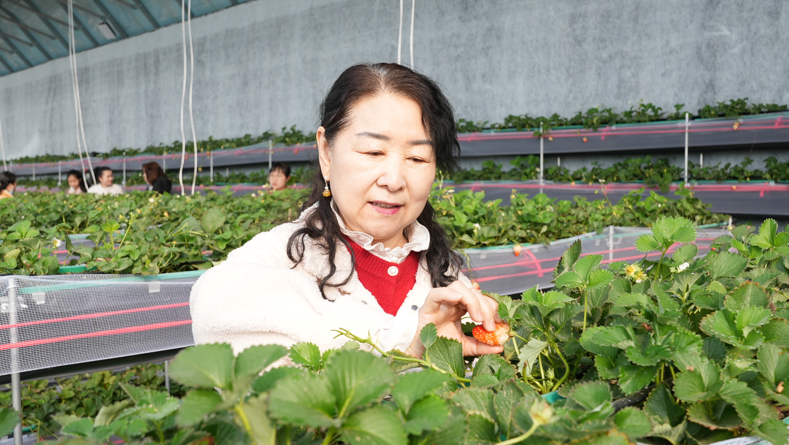 游客在采摘草莓。