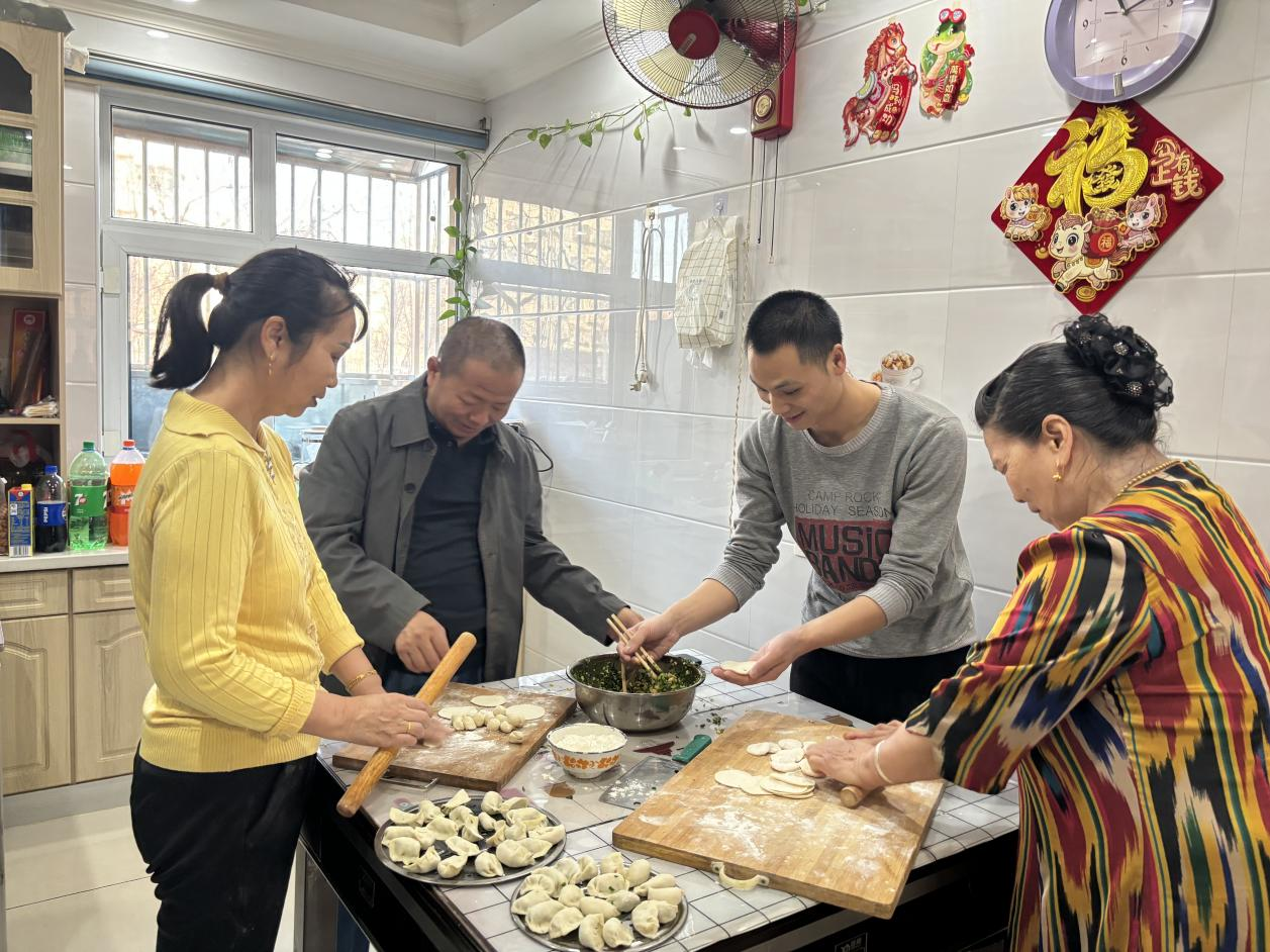 今年农历正月初一,71岁的热衣汗古力·阿依提带着孙女,手捧鲜花和刚炸好的馓子,敲开了邻居高根群家的门。“高弟弟、陈妹妹,新年快乐!我们来给你们拜年了!”高根群和妻子陈兰米热情地迎她进屋:“热衣汗古力姐,快进来暖和暖和,饺子馅已经准备好了,就等你们过来一起包。”